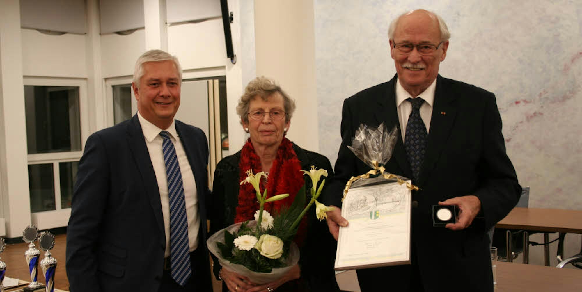 „Sie sind ein Tausendsassa im ausgesprochen positiven Sinne“, lobte Bürgermeister Volker Erner Dudzus, dem er die höchste Auszeichnung verlieh, die Erftstadt zu vergeben hat: Dessen langjähriges und nachhaltiges Engagement für den Sport, die Gesundheit, die Umwelt und die Kultur hätten das Auswahlgremium überzeugt. Neben Erner entscheiden seine beiden Stellvertreter Alfred Zerres und Alfred Zimmermann über die Vergabe der Medaille.