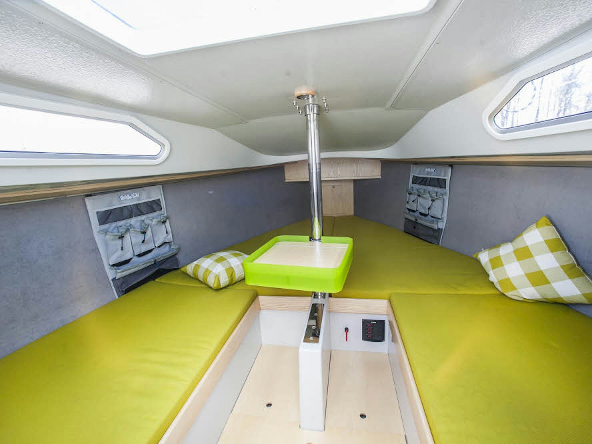Unerwartet viel Platz verbirgt sich im Inneren der Sailart 19 mit vier breiten Kojen und einem variables Schranksystem.