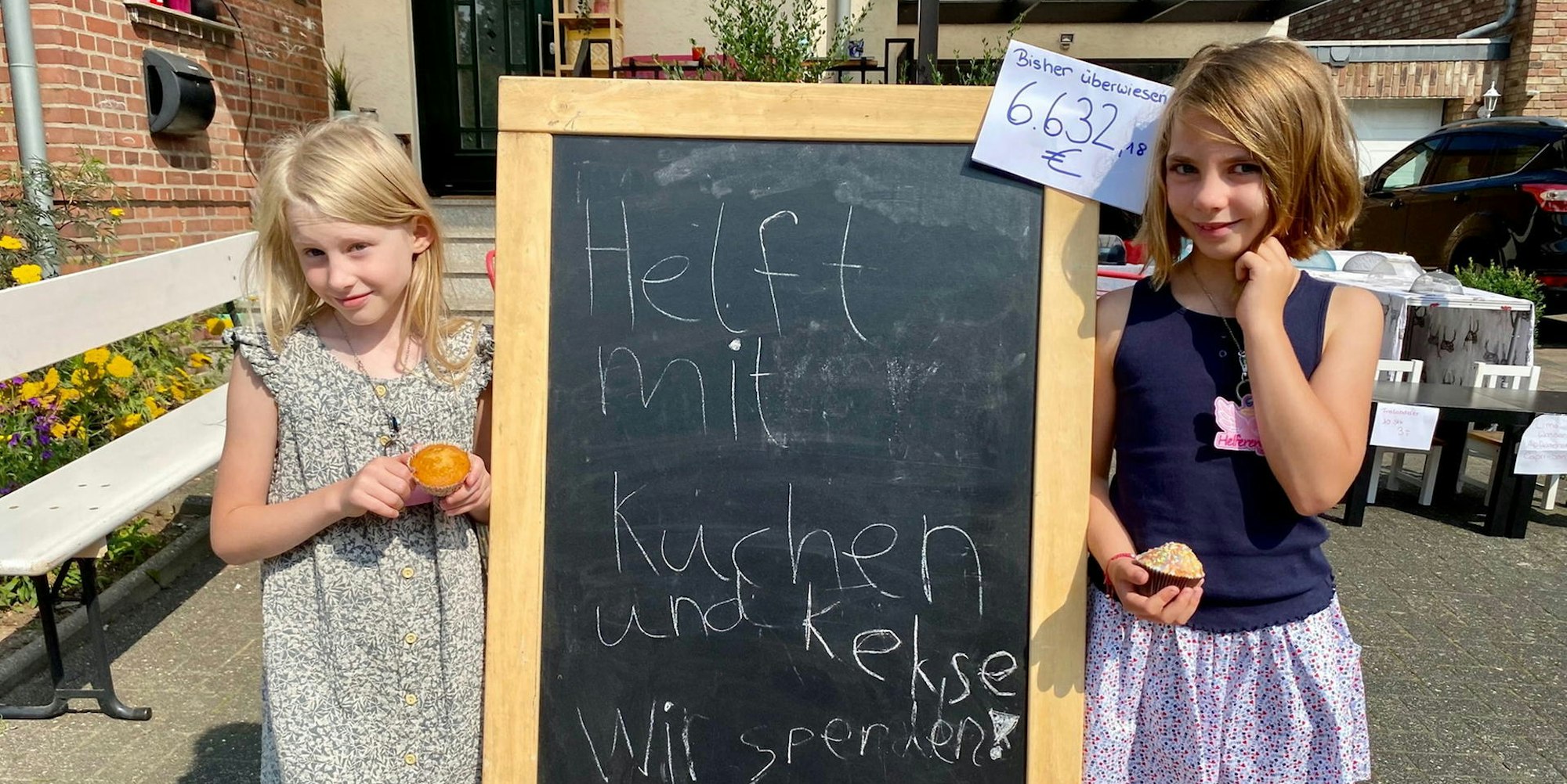 Auf die Idee ihrer Spendeninitiative kamen die Freundinnen Mia und Lumen durch ihre jüngeren Geschwister, Ida (5) und Jasper (6), die spielerisch eine Band gründen wollten und dafür Spenden sammelten. Das animierte die Mädchen, die auch Bilder der Flutkatastrophe kennen, ihre Kekse an der Straße zu verkaufen.
