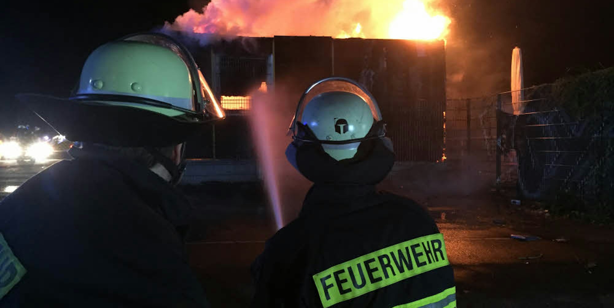 Lichterloh brannte das Vereinsheim des SC Germania Erftstadt-Lechenich, als die ersten Wehrmänner eintrafen.