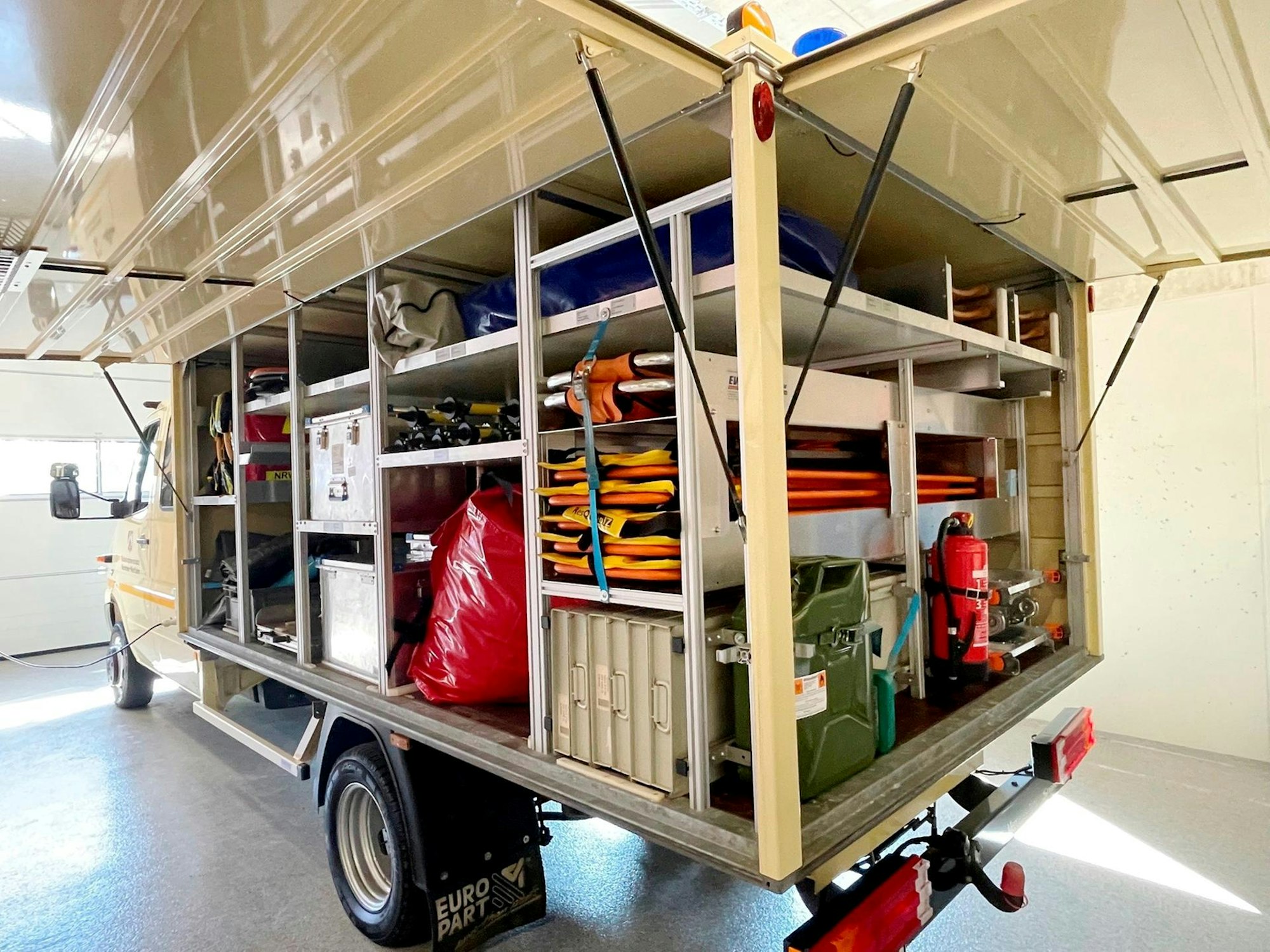 Das komplette Sortiment für den Katastropheneinsatz ist an Bord des „Gerätewagen - Sanitätsdienst“.