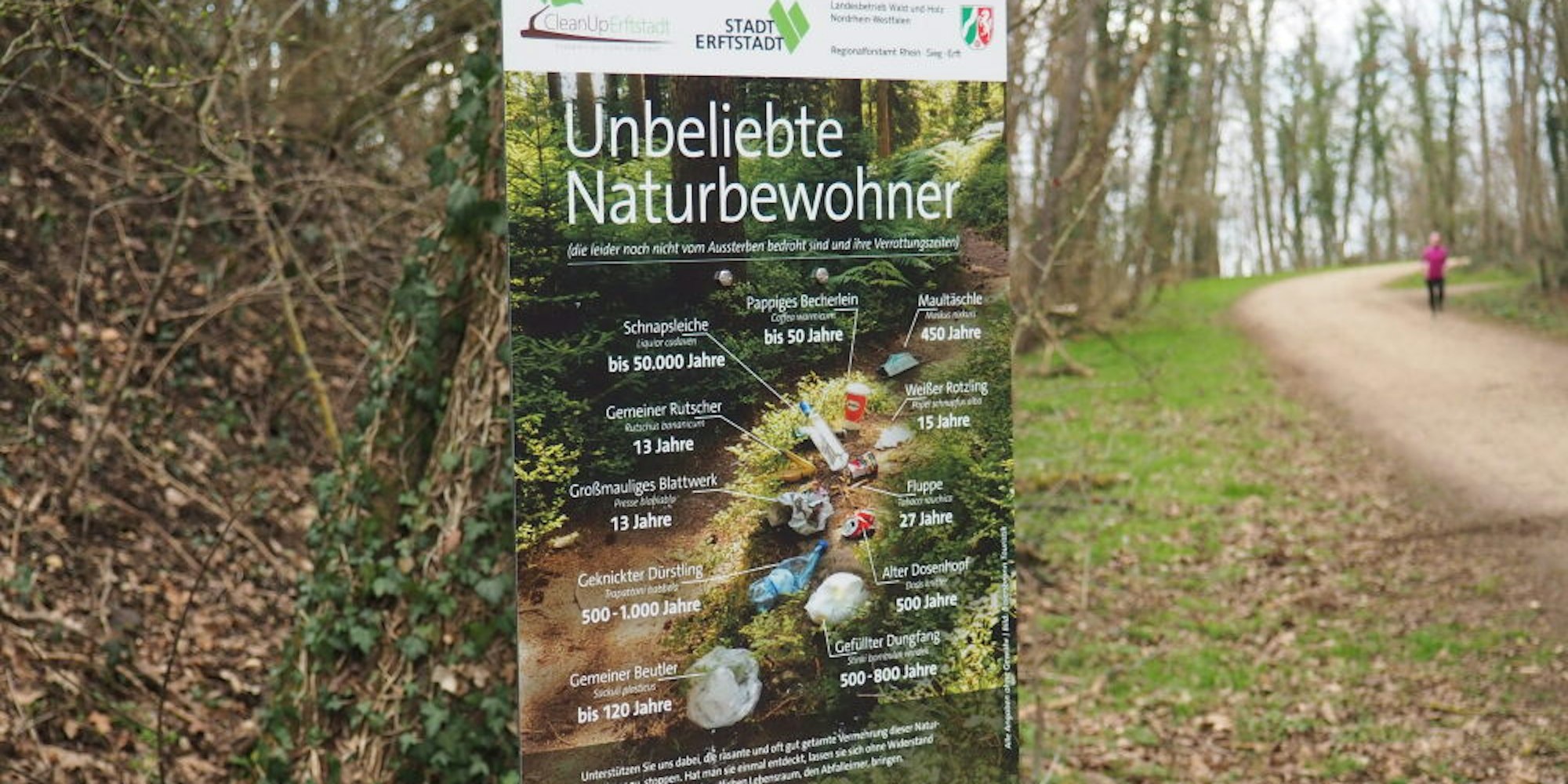 Erftstadt – Haben Sie im Wald schon mal einen Weißen Rotzling gefunden? Oder einen geknickten Dürstling? Ganz sicher. Allerdings sind das keine Pilze, die man vielleicht gern gesammelt hätte. Hinter den niedlichen Namen verbergen sich Dinge, die nicht ins Grüne gehören: das Papiertaschentuch und die zerdrückte Plastikflasche.