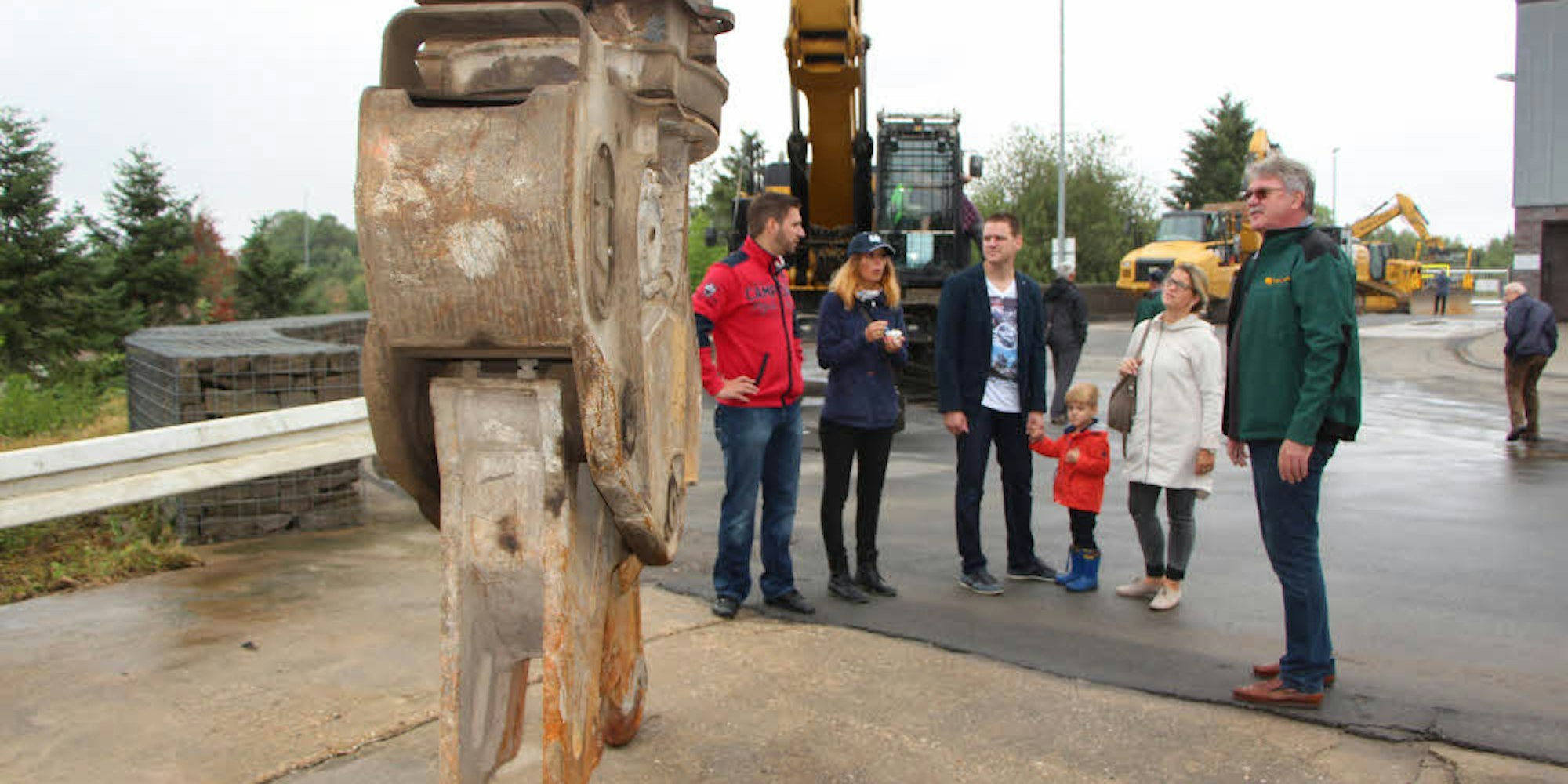 Und gerne erzählten ihnen der Prokurist des Unternehmens, Heinz Czerwonsky und der Geschäftsführer Manfred Schmacks, dass der Bagger mit einem anderen Vorsatz sogar Stahlträger problemlos entzweien kann. Doch das Monstrum war nicht die einzige Attraktion. Die Firma Rhiem und Sohn hatte eingeladen, um der Bevölkerung die Arbeiten am Standort einmal genau zu zeigen.