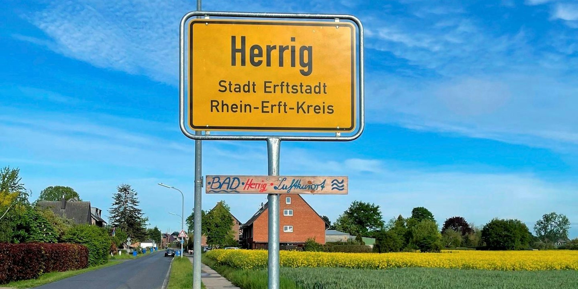 Erftstadt-Herrig – Ein Schild sorgt für Wirbel. Genauer gesagt: der neue Standort der Ortseingangstafel von Herrig an der Lechenicher Straße (Landesstraße 263). Früher stand er einige Meter vor dem Ort. Dann aber entschied der Rhein-Erft-Kreis als zuständige Verkehrsbehörde, dass die Tafel ein geraumes Stück näher in Richtung Ortsmitte gesetzt werden solle.
