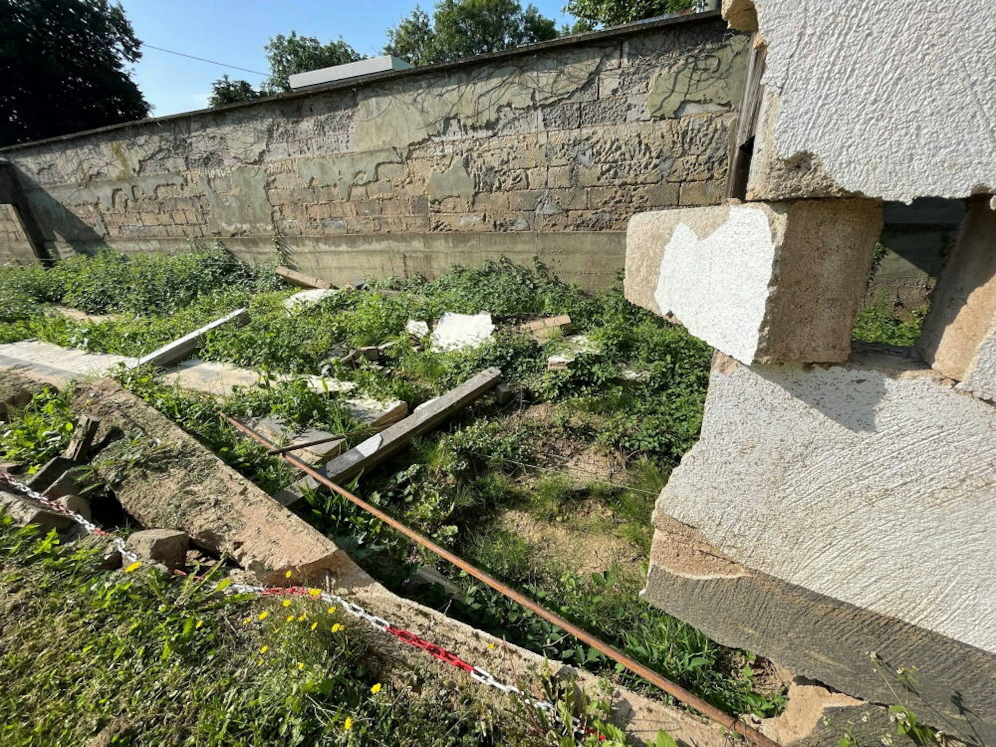 Eine Seitenmauer der Kleinkaliber-Schießbahn ist umgestürzt. Schießen kann hier so schnell niemand mehr.