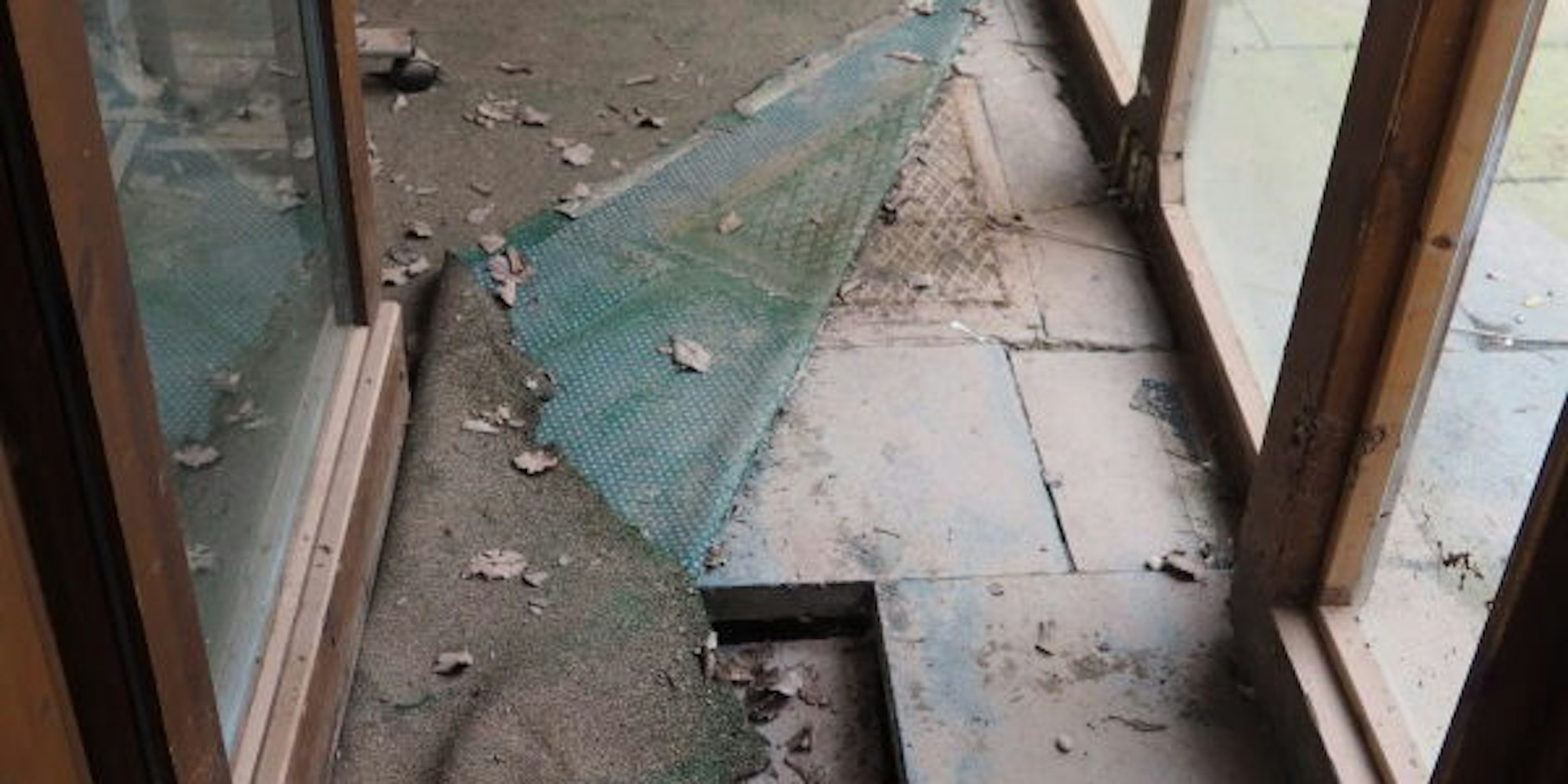 Im Boden klafft ein Loch, die Fliesen sind abgesackt.