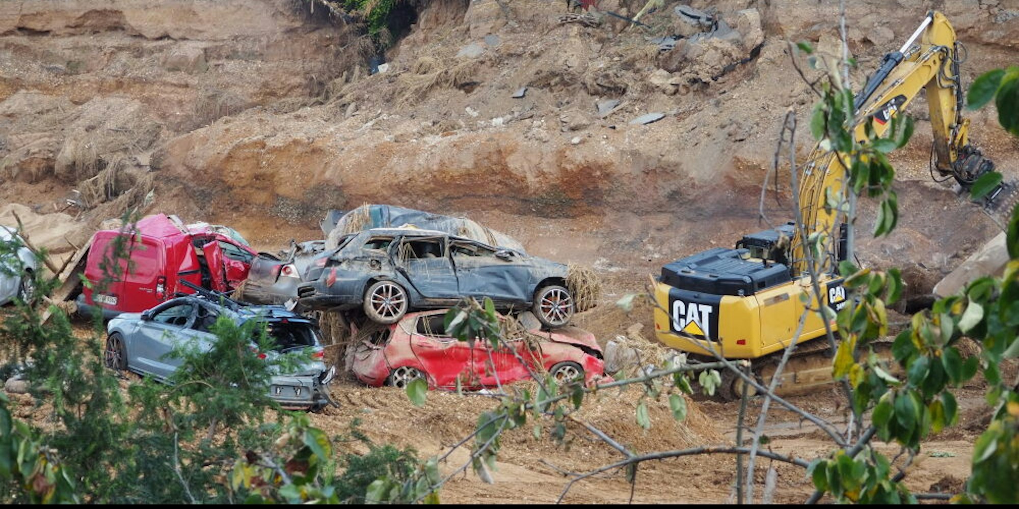An der Abbruchkante in Blessem wurden auch Autos in den Krater gerissen.
