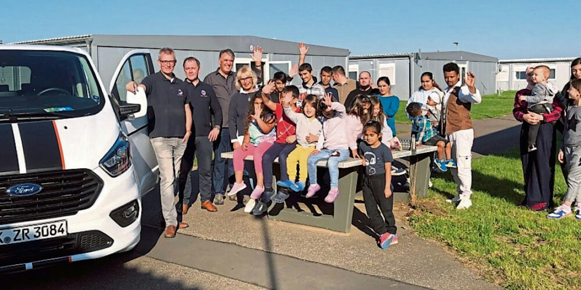 Vertreter des Lions Clubs und Geflüchtete freuten sich, dass der Kleinbus künftig zur Verfügung steht.