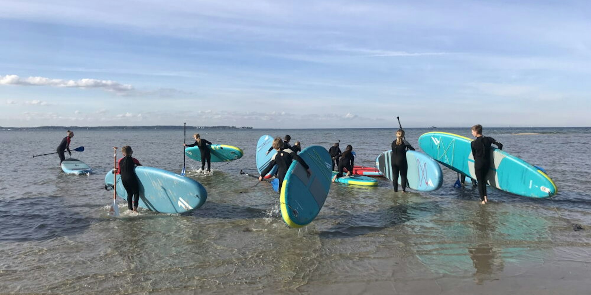 Auf kippeligen Brettern übten sich die Kinder im Stand-Up-Paddeling auf den Wellen der Ostsee.