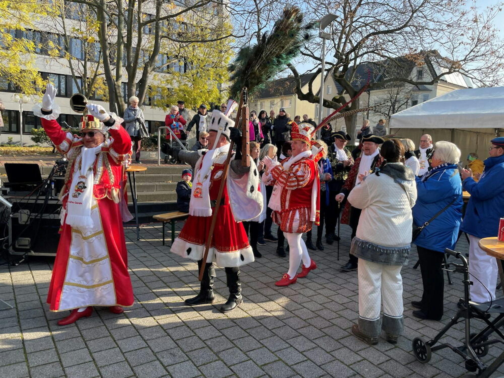 Die Stimmung war gut an diesem sonnigen Vormittag. Auch Karaschinski war zufrieden. „Alle haben sich auf die Session gefreut“, sagt er. Aus Thorr ihrem Dreigestirn hinterher gereist waren Heike Neukirchen und Stephanie Schulz-Cremanns. Meistens müssen sie am Elften im Elften arbeiten, aber Neukirchens Mann sei bei der Bergheimer Torwache aktiv, da seien sie dieses Mal mitgekommen. Von der Pandemie wollten sie sich die Feier nicht kaputtmachen lassen: „Jetzt erst recht“, sagten die Frauen.