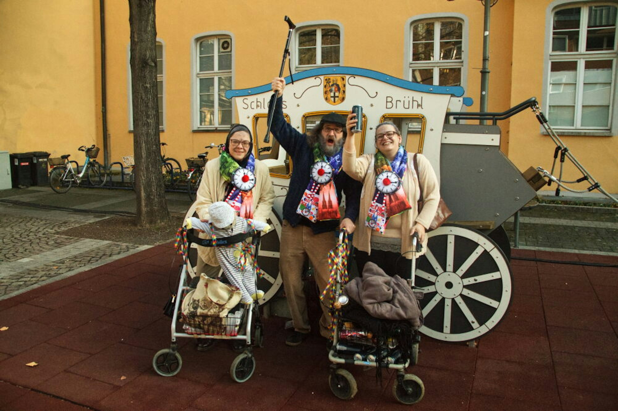 Drei Freunde aus Brühl, Bonn und Bergisch-Gladbach – kostümiert als Rentner-Trio mit Rollatoren und Baby-Nubbel – blickten in der Innenstadt ein wenig enttäuscht drein. „Wir wollen nicht nach Köln, da ist es uns zu voll und zu eng, vor allem bei den aktuellen Inzidenzen“, sagte die Brühlerin Sabrina Hawemann, verkleidet als Rentnerin „Hildegard“. „Wir sind zwar alle geimpft, aber man sollte trotzdem vorsichtig sein.“
