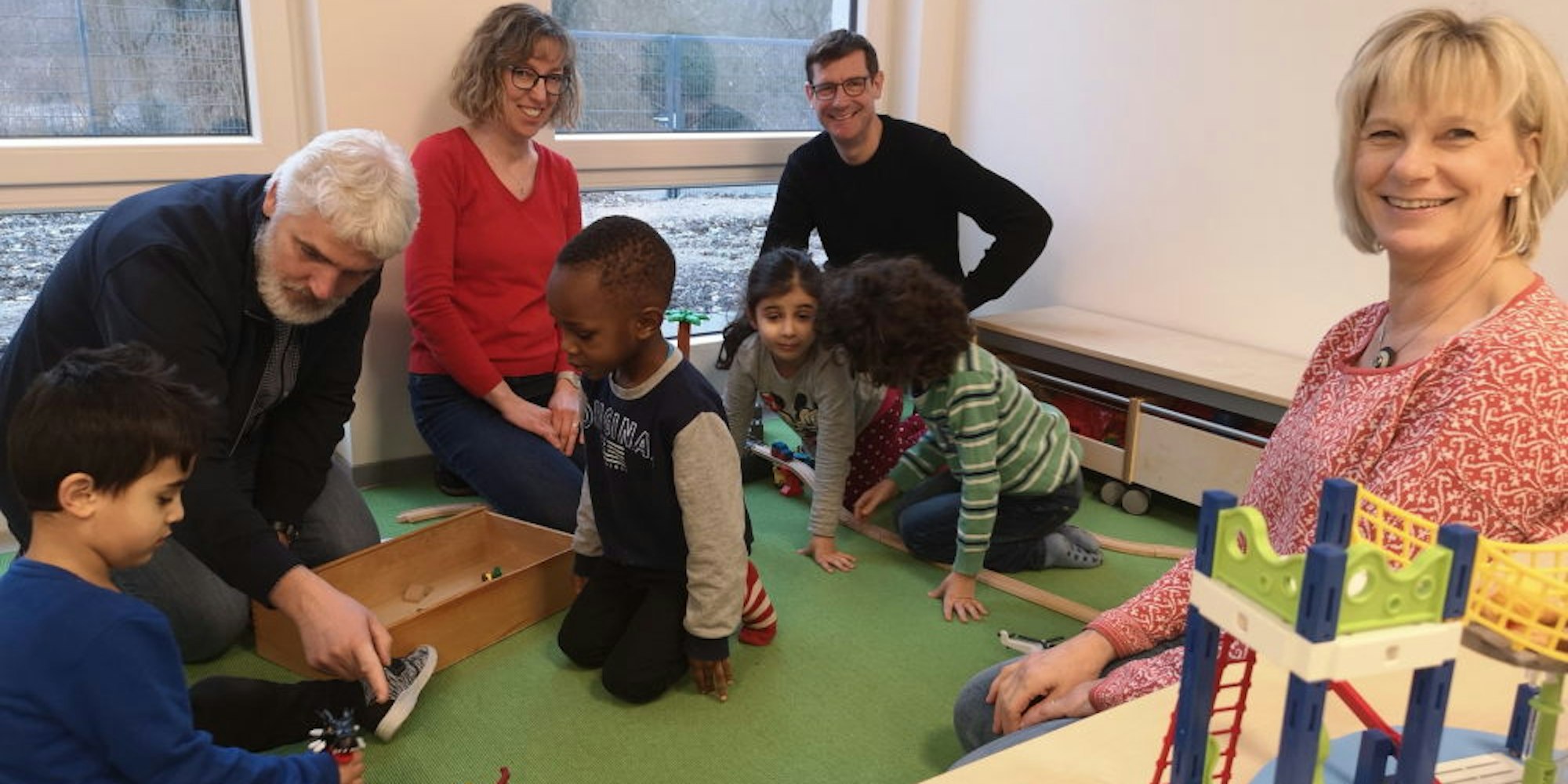 Insgesamt 18 Mädchen und Jungen (davon zwei Kinder mit Behinderung) gehören zur inklusiven Gruppe. Die dritte Gruppe besteht aus zehn Kindern unter drei Jahren. Und schließlich gibt es noch die altersgemischte Gruppe mit 20 Pänz von zwei bis sechs Jahren. In der Kita mit derzeit 56 Kindern arbeiten insgesamt 15 Mitarbeiter. In den großzügig dimensionierten Räumen, bei denen auf Schallschutz großen Wert gelegt wird, geht es sehr entspannt zu. Lichtdurchflutet sind alle Räume – dank bodentiefer Fenster, Glasöffnungen in der Decke und großen Lichtkuppeln.