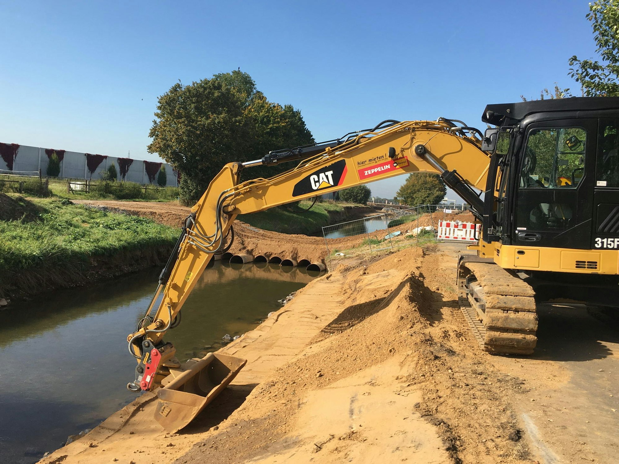 Die beschädigten Ufer der Erft werden bei Blessem repariert.
