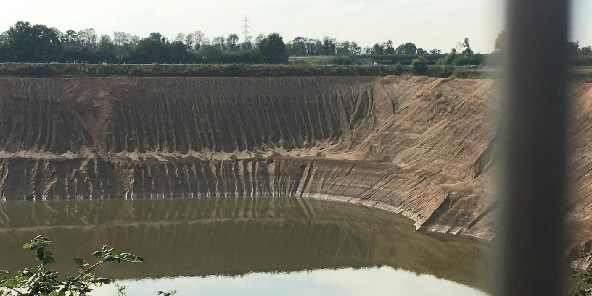 Ein Blick in die Blessemer Kiesgrube zeigt die teils sehr steilen Böschungen in Richtung Autobahn.