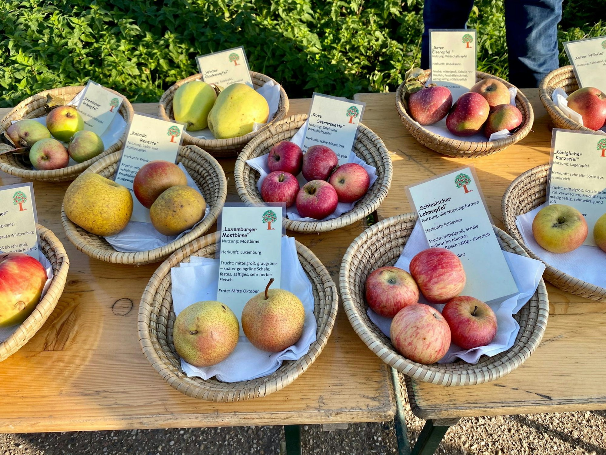 Zur Eröffnung der „Streuobstroute“ gab es im Naturparkzentrum Friesheimer Busch auch einige Apfelsorten zum Kosten.
