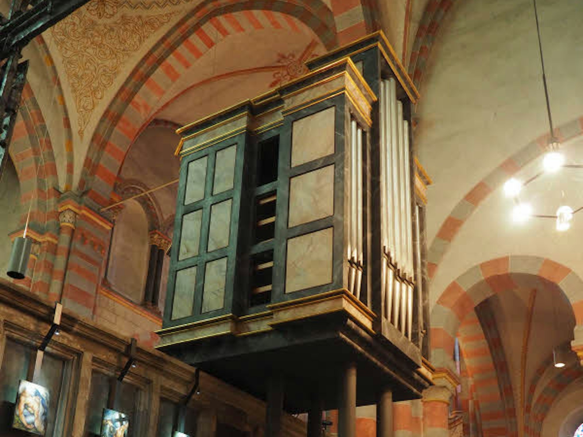 Die Chororgel wird ersetzt. Die neue wird an den Westwänden der beiden Seitenschiffe (Foto links, über dem Bogen) hängen.