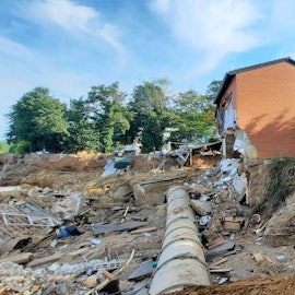 Irgendwann, so Jansen, sei das Gelände an der Stelle, an der die Erft „abgeknickt“ sei und sich ihren eigenen neuen Verlauf gesucht habe, so dicht, dass das Wasser von alleine wieder abfließe. Da das aber noch nicht der Fall ist, will der Erftverband das beschleunigen, indem er auch dort Material zur Verdichtung anschüttet. „Die Erft nach oben legen“, nennt Jansen das im Gespräch. Irgendwann sei der Pegel an diesen Stellen noch höher, als er es ohnehin durch die Flut schon ist, sodass das Wasser dann abfließe, „wie in einer überlaufenden Badewanne“.