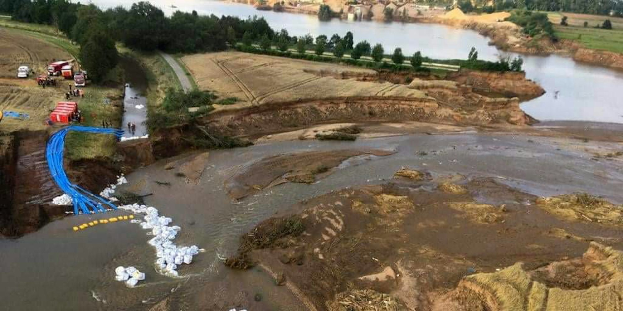 Der Damm ist zunächst mit Sandsäcken geschlossen worden.