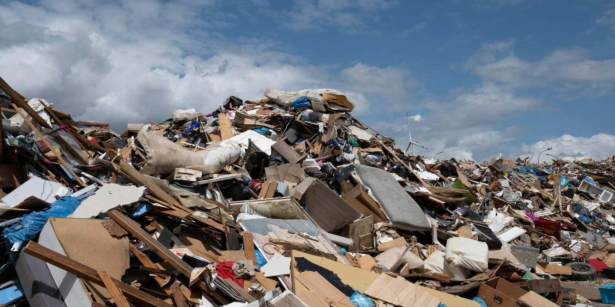 Das Problem ist nicht nur die schiere Menge – die Kompostanlage ist „von Sperrmüll umzingelt“, wie Schneider sagt. Die Entsorgung wird erschwert, weil es eben kein reiner Sperrmüll ist, der sich erst an den Ortseingängen häuft und dann bei Remondis. Verdorbene Lebensmittel und anderer organischer Abfall, Gaskartuschen, Lithium-Ionen-Batterien, Elektrogeräte – alles, was die Flut ruiniert hat, ist dort gelandet. „Sortieren ist bei der Menge kaum noch möglich“, sagt Schneider.