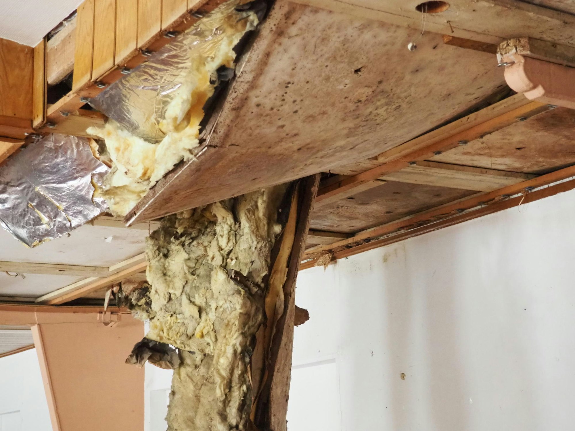 Das Gebäude ist nicht mehr zu retten. Beim Starkregen war das Wasser durch das Dach in Ständerwerk und Dämmung gedrungen.