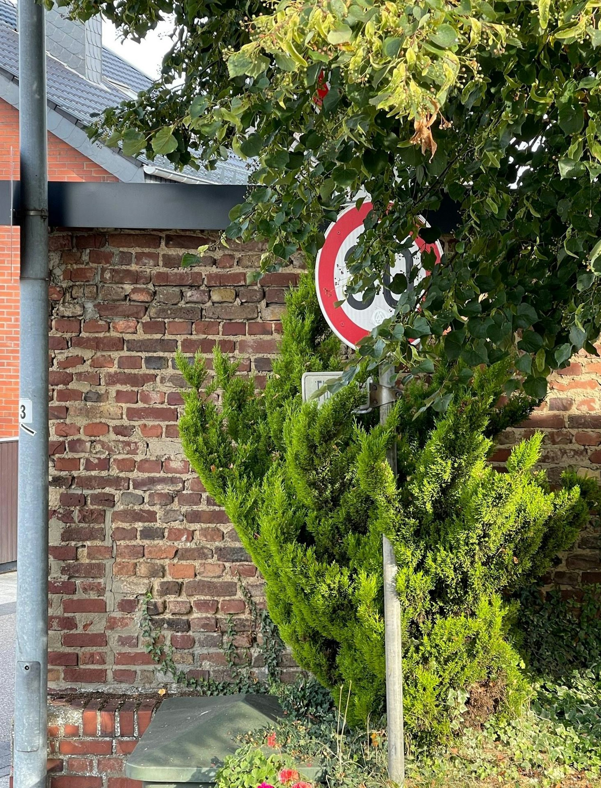 Erlaubt sind hier nur Tempo 30 und für Lastwagen gilt ein Durchfahrverbot, ausgenommen sind Anlieger. „Doch daran hält sich so gut wie kein Lkw-Fahrer“, beklagt Hütten. Ein Grund sei wohl, dass das Verbotsschild an der Straßenzufahrt für viele Fahrer kaum erkennbar sei, da es zugewachsen sei.