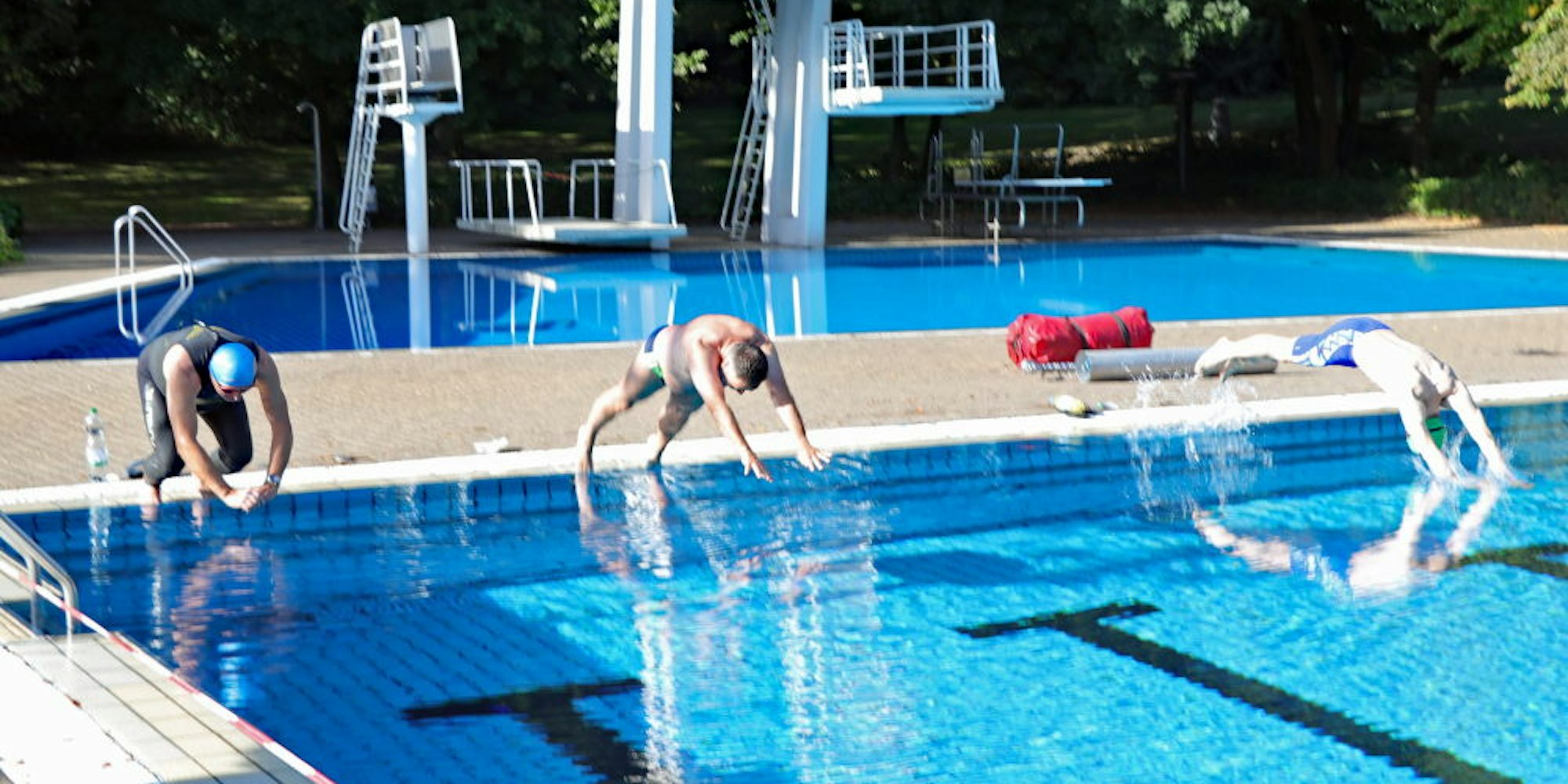 Die Sonne schien, dennoch zeigte das Thermometer nur läppische zehn Grad an. Also war es für die ersten Teilnehmer, die pünktlich am Start standen, keine Frage: Hinein ins 23 Grad warme Wasser des Schwimmbeckens!