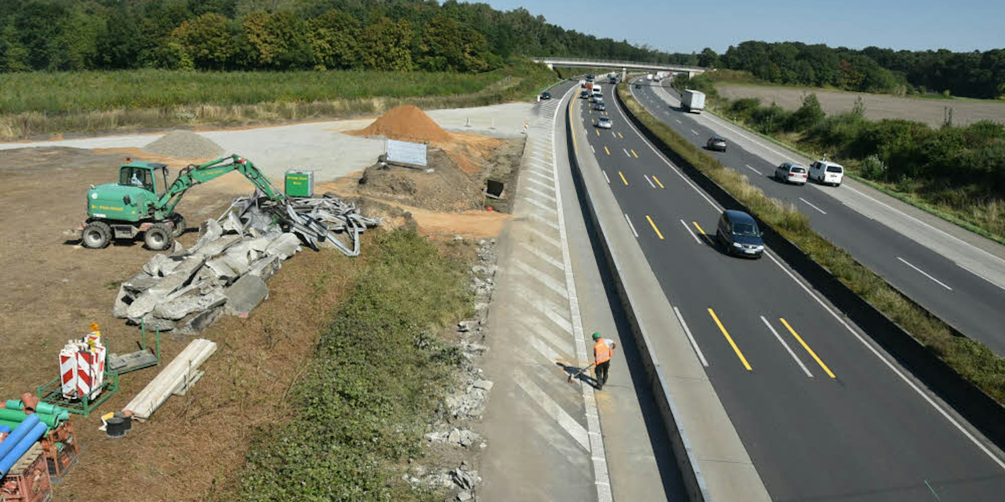 Über den Standstreifen auf der Autobahn 4 führt zunächst eine Baustellenzufahrt. An dieser Stelle soll später der neuen Autobahnanschluss entstehen.