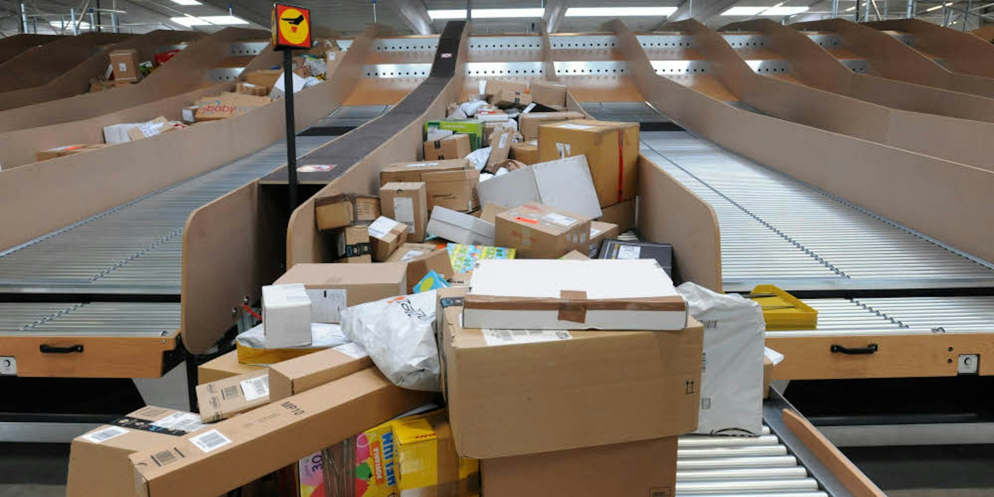 Nahezu automatisch werden die Pakete nach Zustellbezirken sortiert.