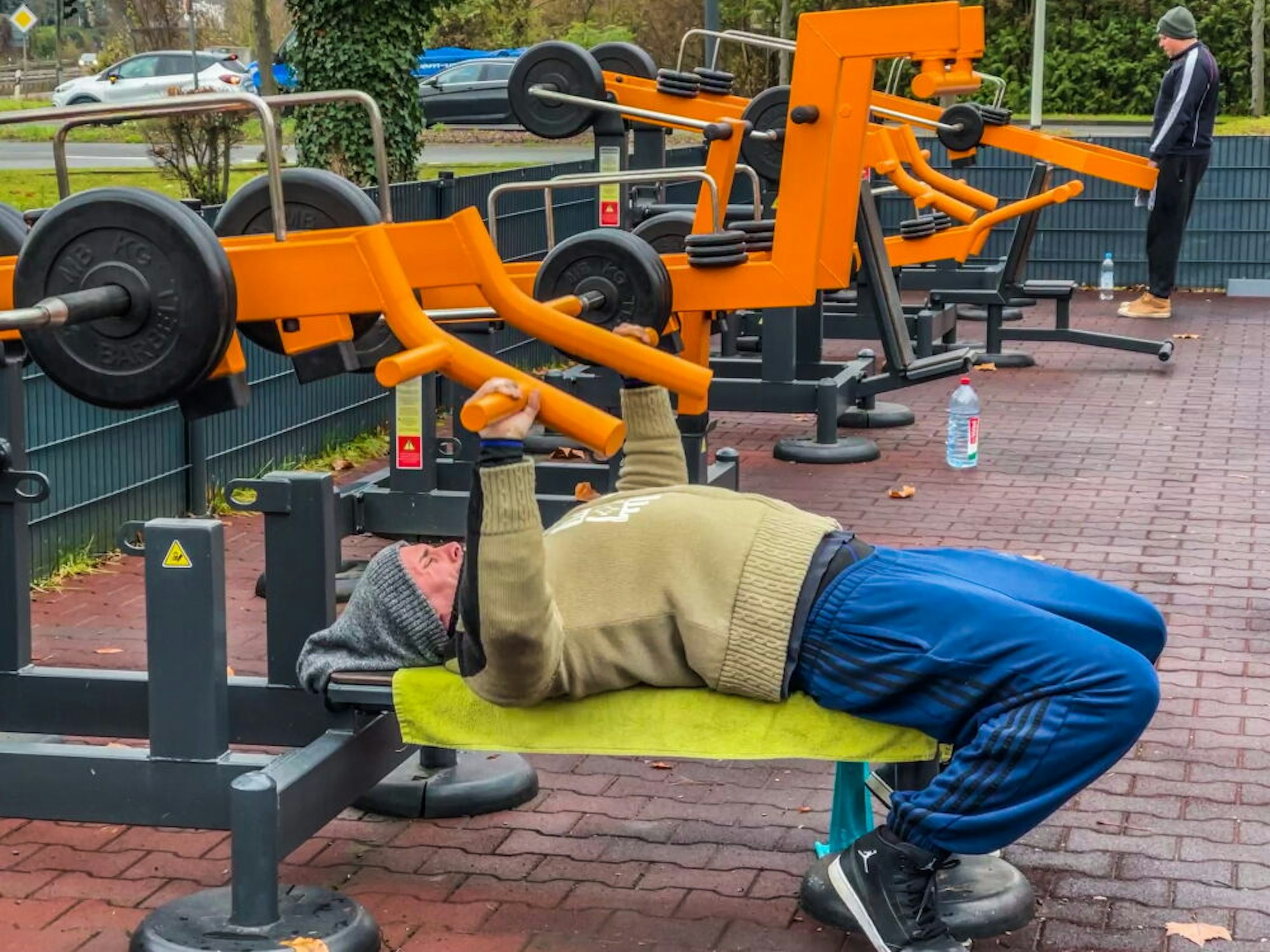 Frechen – Sie stemmen Gewichte, schwitzen beim Ausdauertraining und strampeln sich auf dem Ergometer ab – und das an der frischen Luft, bei teils eisigen Temperaturen. Doch anders geht es derzeit nicht. Wegen der Corona-Pandemie dürfen Fitnessstudios ihre Türen momentan nicht öffnen. In Frechen besteht jedoch die Möglichkeit, auf einer Fläche unter freiem Himmel zu trainieren.