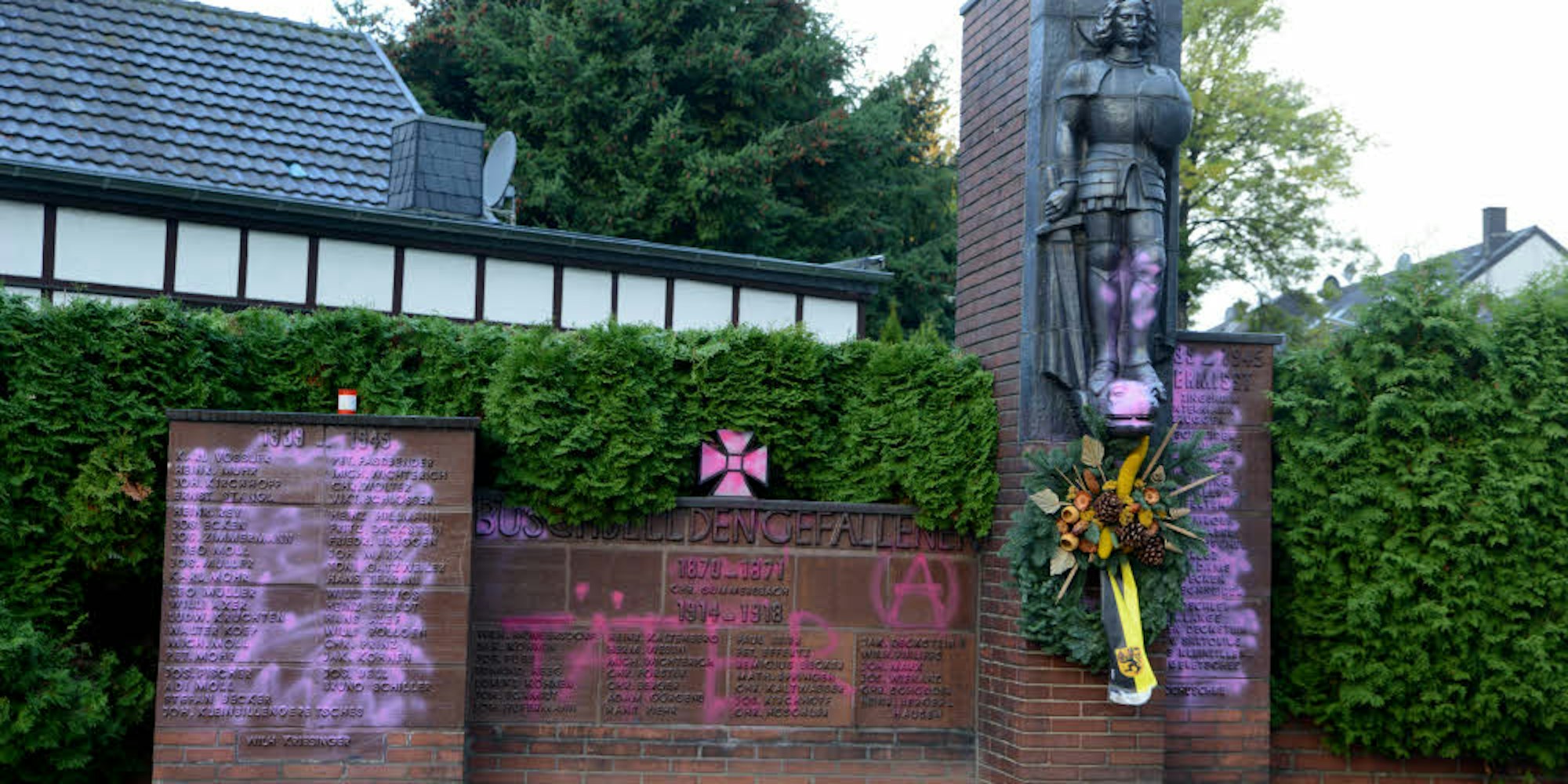 Vandalismus in FrechenEhrenmal in Buschbell mit Farbe besprüht