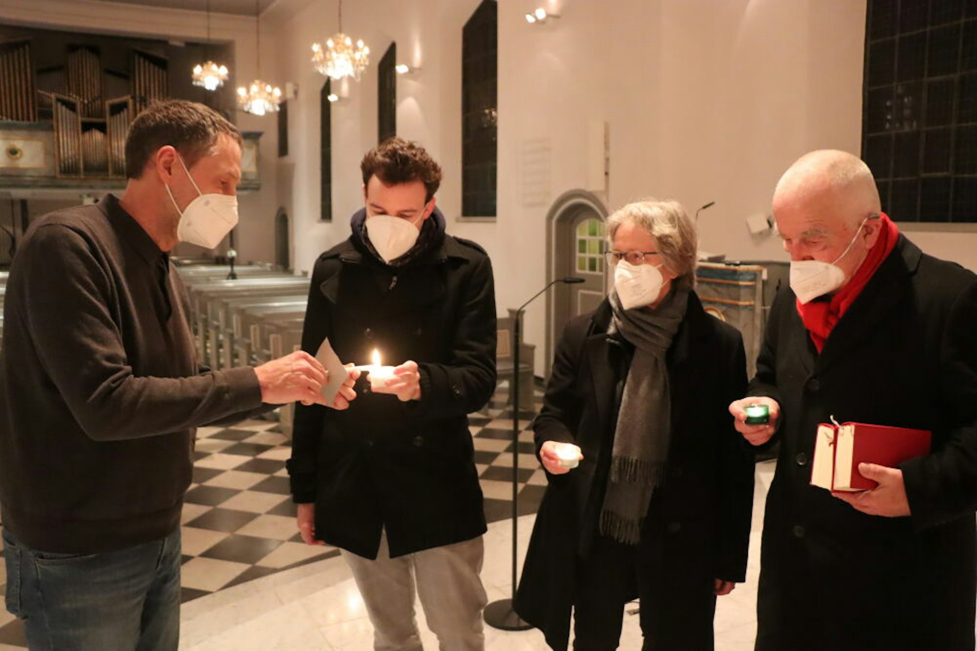 Gut ein Dutzend Christen waren in die evangelische Kirche gekommen. Sie zündeten Kerzen an und beteten zusammen mit Pfarrer Sven Torjuul: „Herr, mach mich zum Werkzeug deines Friedens – nicht, dass ich getröstet werde, sondern, dass ich tröste“.