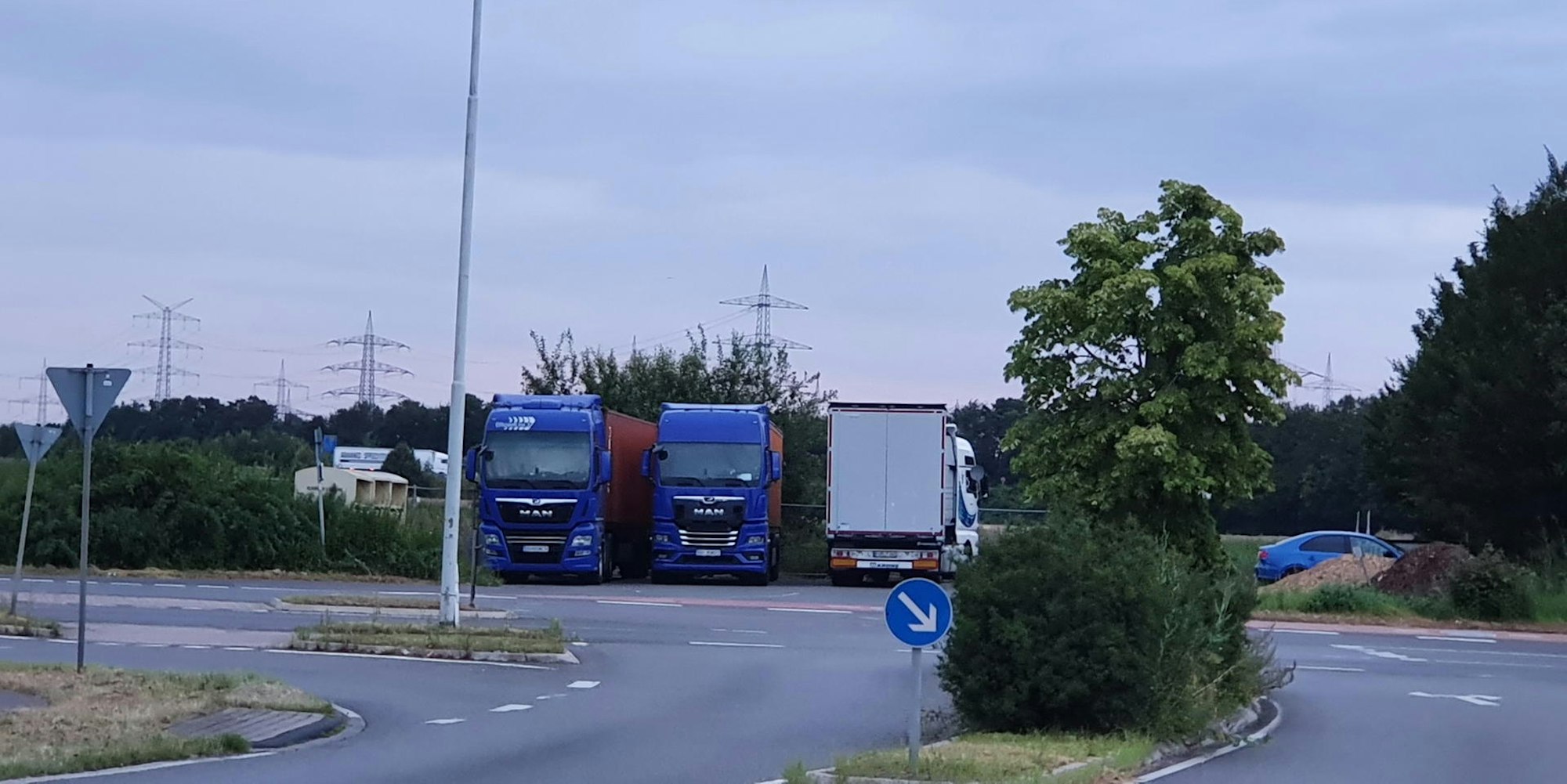 An der künftigen Zufahrt zum Gewerbegebiet parken schon jetzt oft Lastwagen.