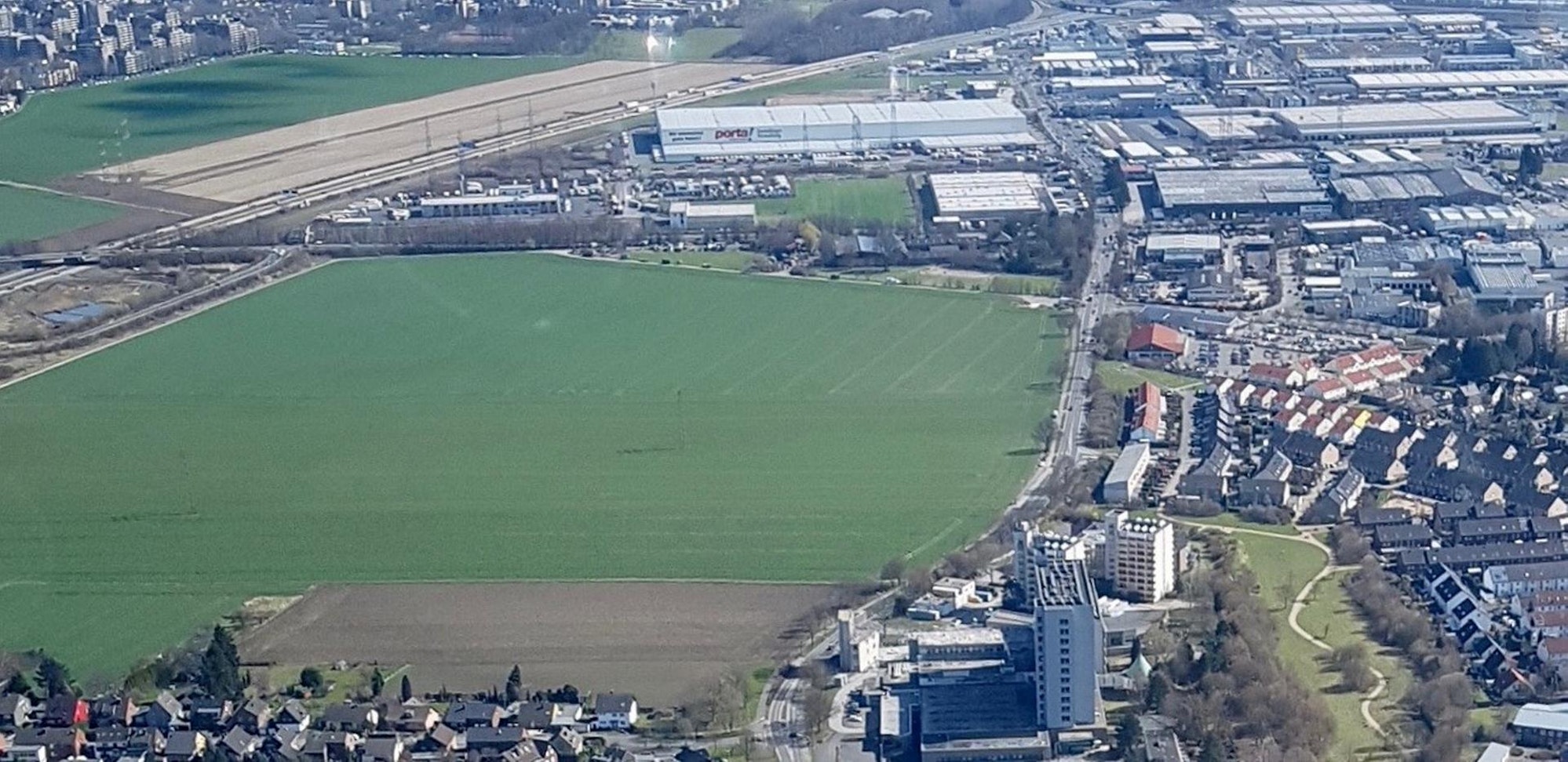Auf der Fläche in der Nähe des Frechener Krankenhauses ist ein neues Gewerbegebiet geplant.