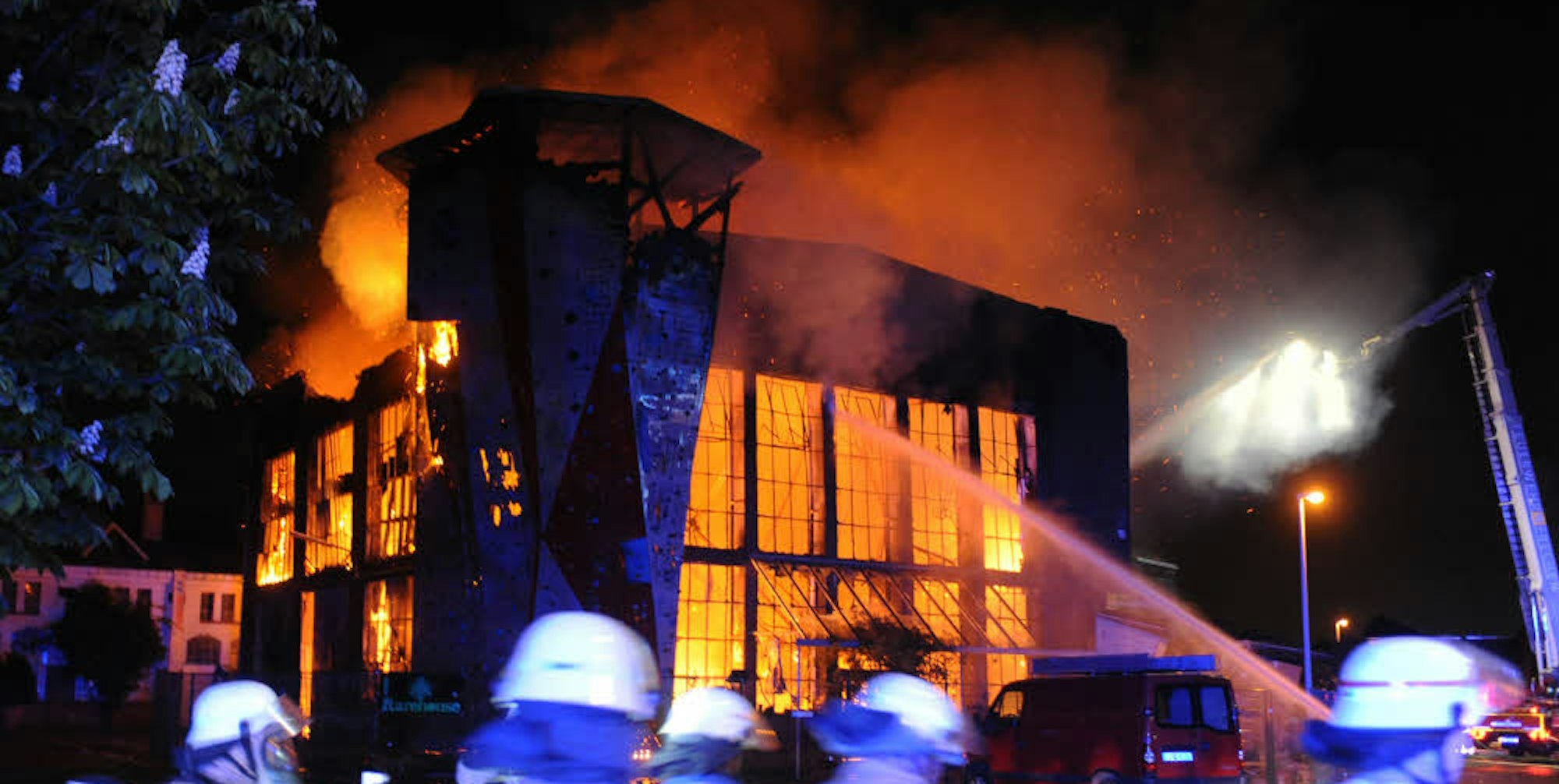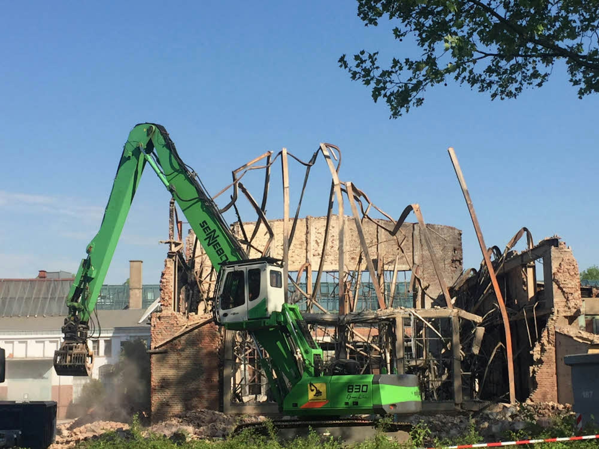 Nach dem Feuer kam der Abbruchbagger, denn von der Halle war nicht mehr als eine Ruine übriggeblieben.