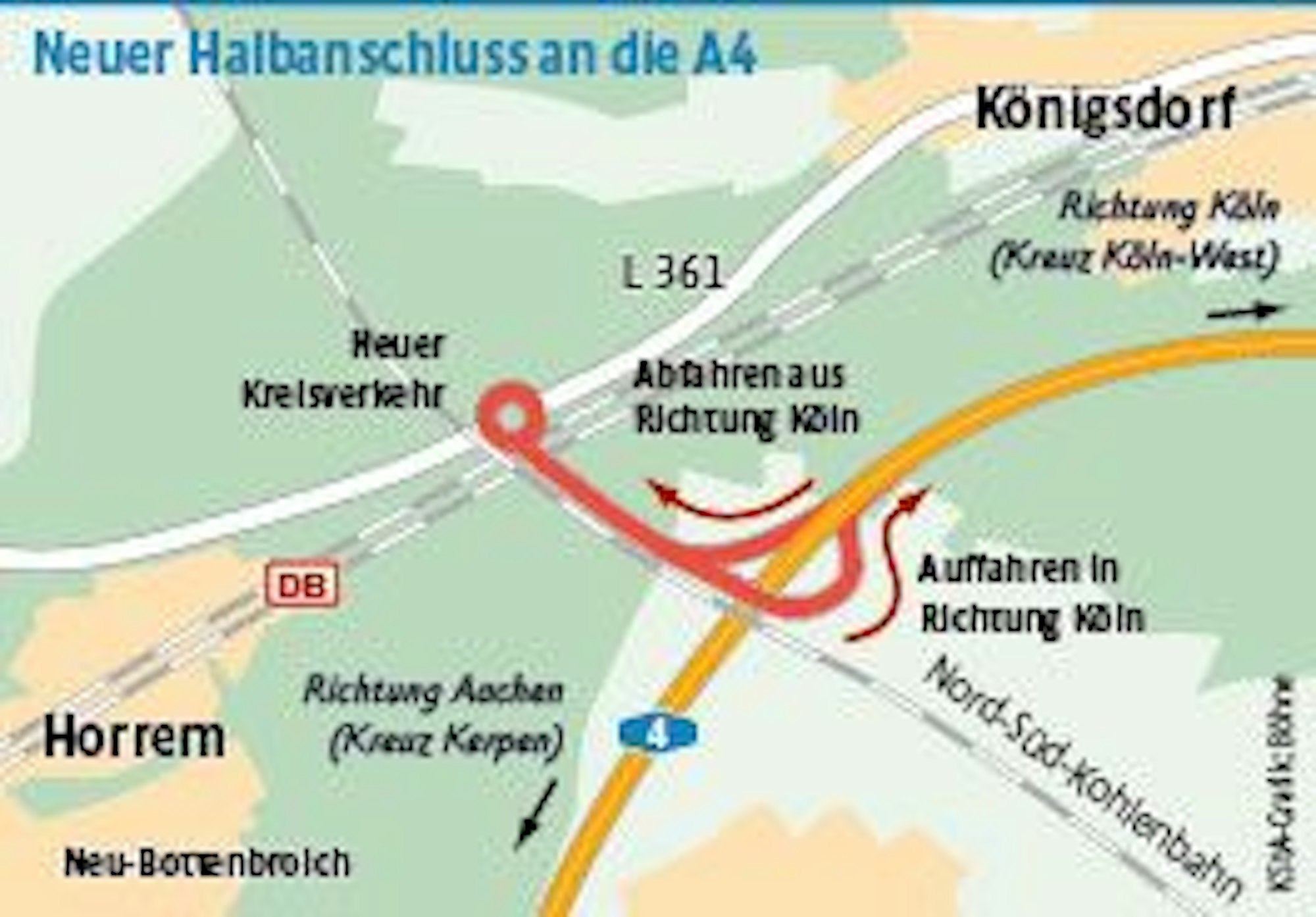 Dass die Anschlussstelle für Frechen, Kerpen und auch für die Region wichtig ist, steht außer Frage. Sie soll unter anderem die Ortsdurchfahrt durch Frechen-Königsdorf entlasten. Der Teilanschluss stößt auf die Landstraße 361 (Aachener Straße) zwischen Königsdorf und Kerpen-Horrem.