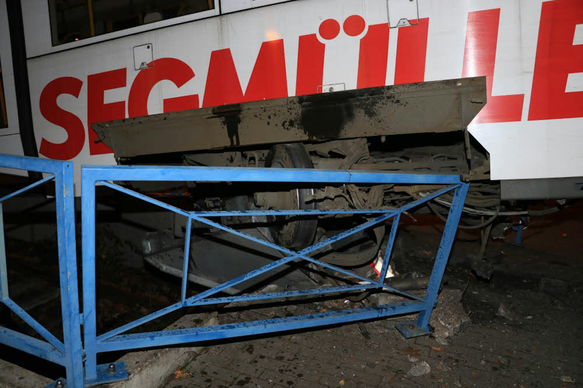Frechen – Buchstäblich übers Ziel hinaus schoss eine Straßenbahn der Linie 7 am Freitagmorgen in Frechen. Um 0.50 Uhr sollte die Bahn laut Fahrplan die Endhaltestelle in Benzelrath erreichen. Doch anstatt sich langsam dem Prellbock an der Endstation zu nähern, fuhr die Bahn mit überhöhter Geschwindigkeit weiter. Es gab einen lauten Knall, und der vordere Teil der Bahn wurde wie an einer Schanze in die Höhe getrieben. Die Straßenbahn kam erst einige Meter weiter an einem Schutzgitter zum Stehen.