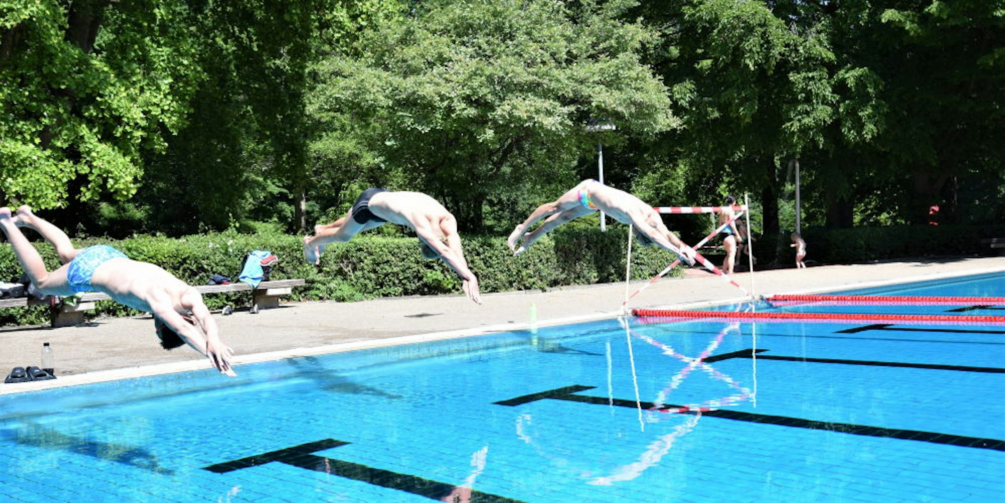 Matthias Griep, Jan Friedmann und Julian Pannes perfektionierten im Terrassenfreibad Frechen ihren Kopfsprung.