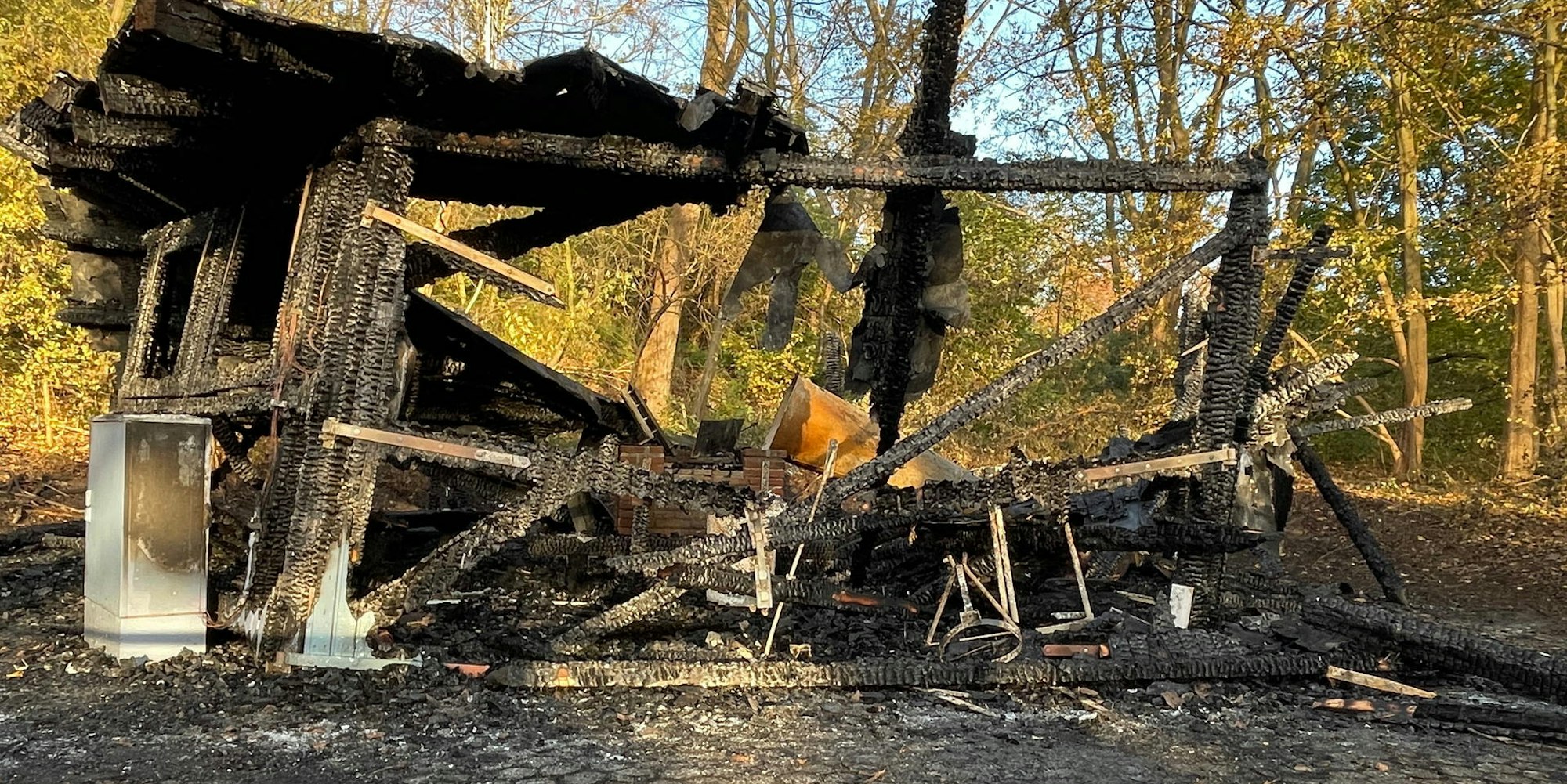 Die Grillhütte im Frechener Rosmarpark ist bei dem Brand vollständig zerstört worden.