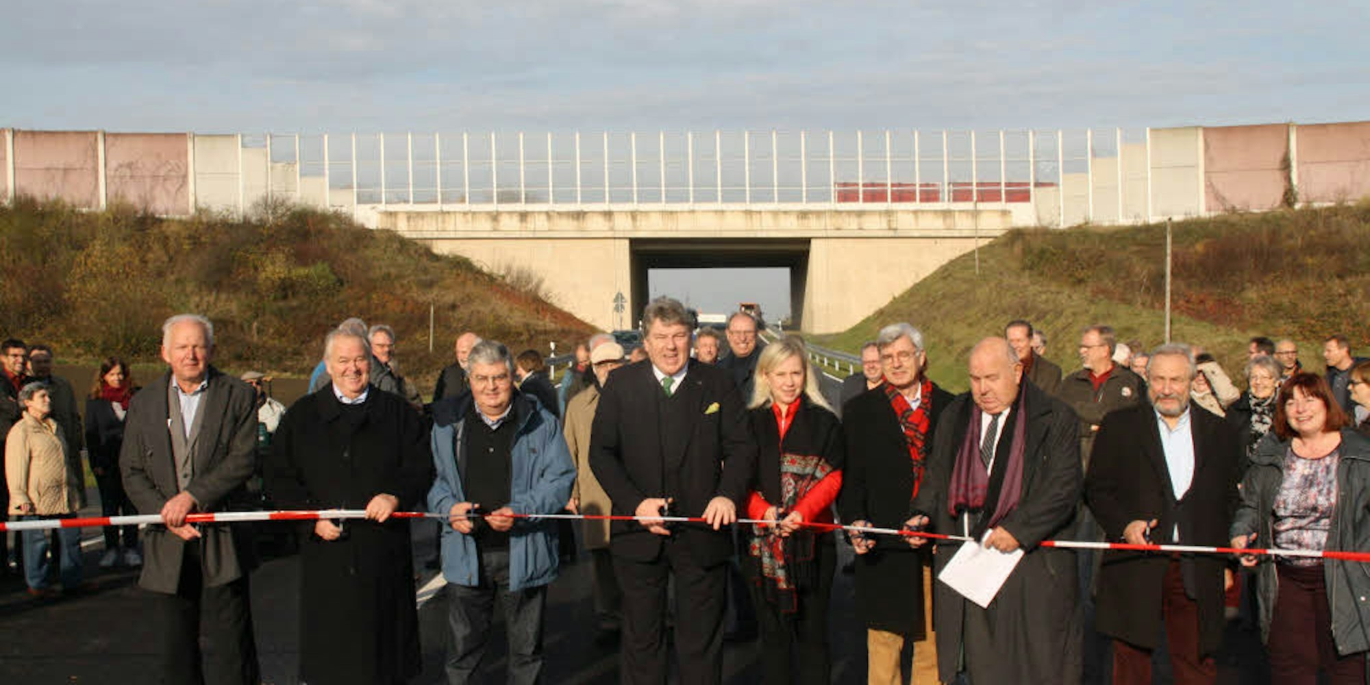 Landrat Michael Kreuzberg (Mitte) gab die Umgehungsstraße gemeinsam mit Vertretern aus Politik und Verwaltung frei.