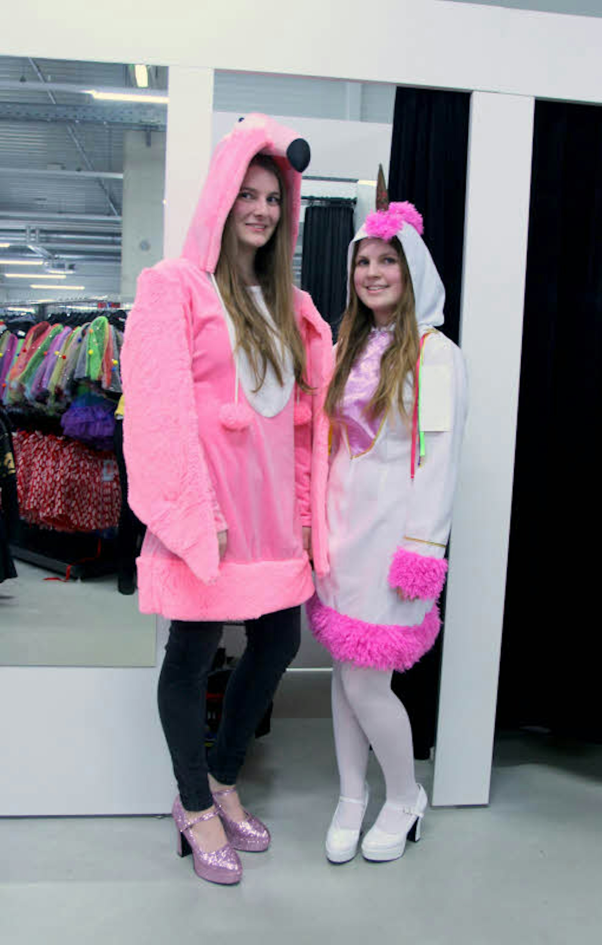 Die Freundinnen Annika und Josephine im Flamingo- und im Einhorn-Look.