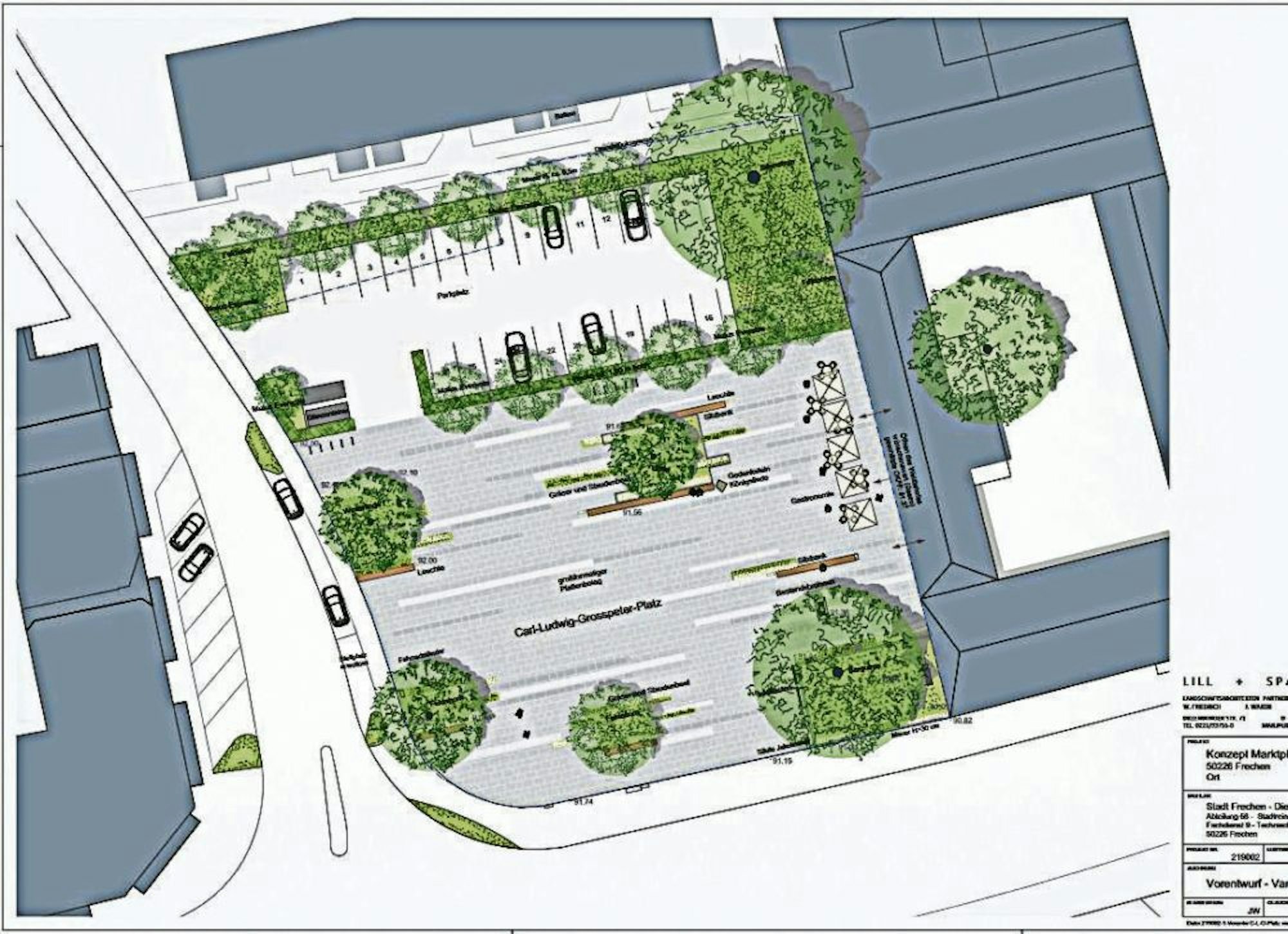 Frechen-Königsdorf – Bei den Planungen für die Neugestaltung des Königsdorfer Dorfplatzes soll nun auch wieder der ursprüngliche Entwurf der Bürgerinitiative Marktplatz Königsdorf in Betracht gezogen werden. Er sieht vor, möglichst alle Bäume und auch alle Parkplätze zu erhalten.