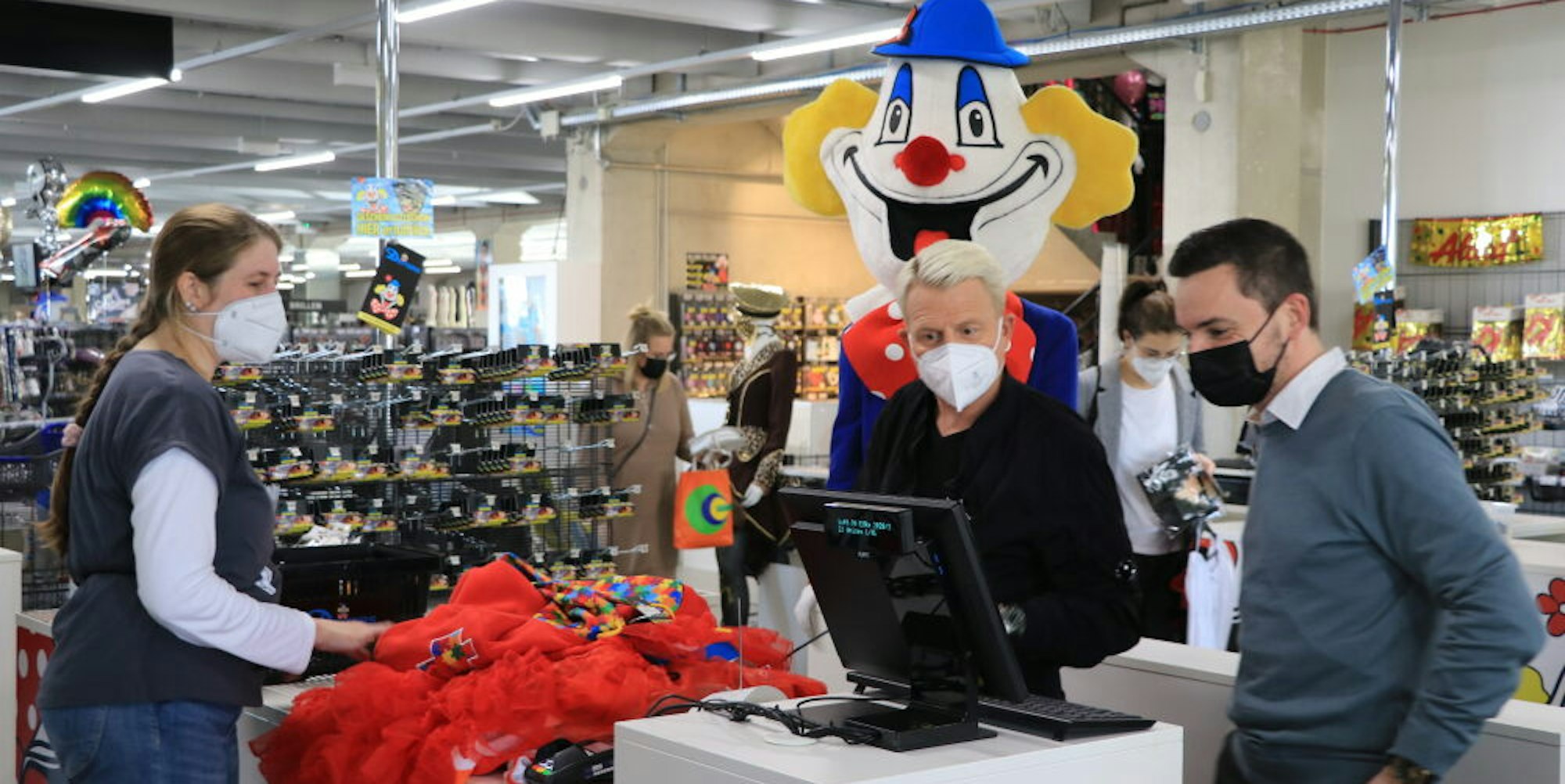 Frechen – Die Kundinnen und Kunden, die am Samstag zu Deiters an der Doktor-Gottfried-Cremer-Allee kamen, um sich für die jecke Zeit auszustaffieren, staunten nicht schlecht, als sie am Eingang der Verkaufshalle einen weißblonden Mann sahen, der in eine Fernsehkameras quatschte. „Sie können ruhig vorbeilaufen“, rief er ihnen zu, während ihm noch einmal kurz die Stirn abgepudert und die Haarspitzen in Form gelegt wurden.