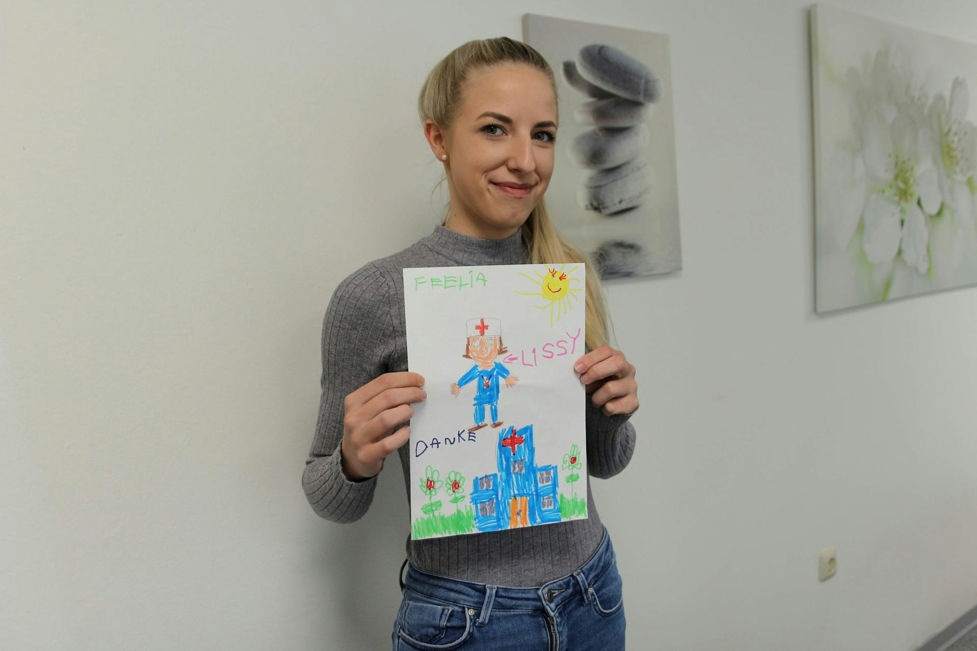 Svenja Wollenweber mit dem selbst gemalten Bild von Feelia.