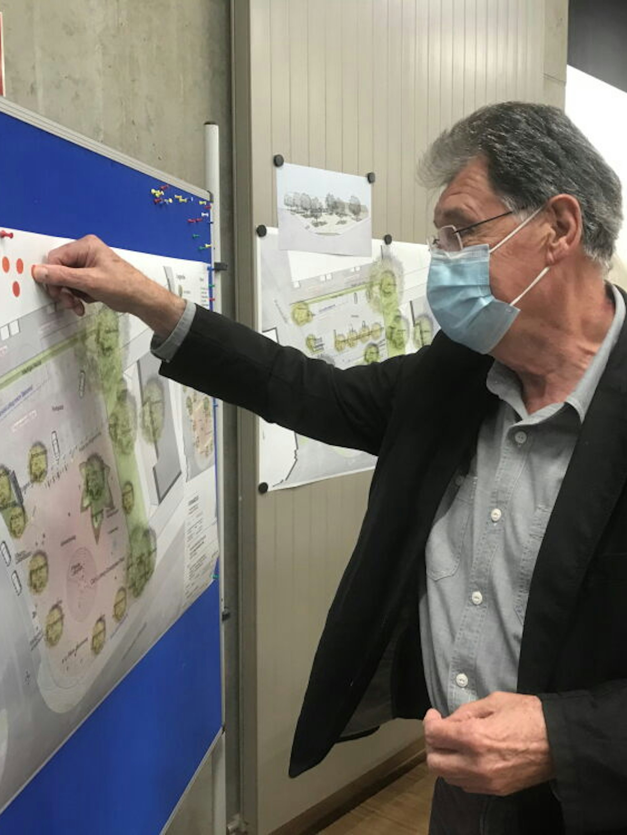 „Variante 3 ist nur eine halbherzige Lösung, wir sollten mutiger sein“, pflichtete ihr ein anderer Besucher der Info-Veranstaltung bei. Er schlug vor, zusätzliche Parkplätze am Bahnhof zu schaffen. „Wir müssen vom Auto wegdenken“, sagte er. Bei der „Punktevergabe“ am Ende – die Teilnehmer konnten die von ihnen bevorzugten Entwurf mit einem roten Punkt markieren – hatte Variante 3 mit 29 zu 14 Stimmen die Nase vorn.