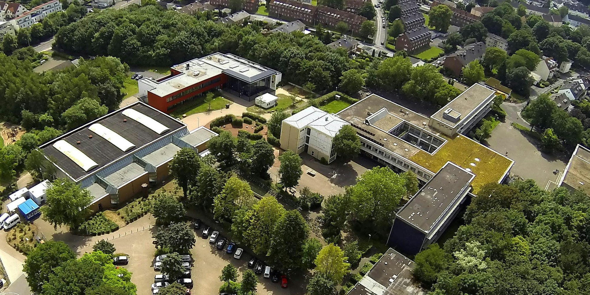 Die Dreifeldhalle (l.) des Gymnasiums soll für mehr als fünf Millionen Euro saniert werden.