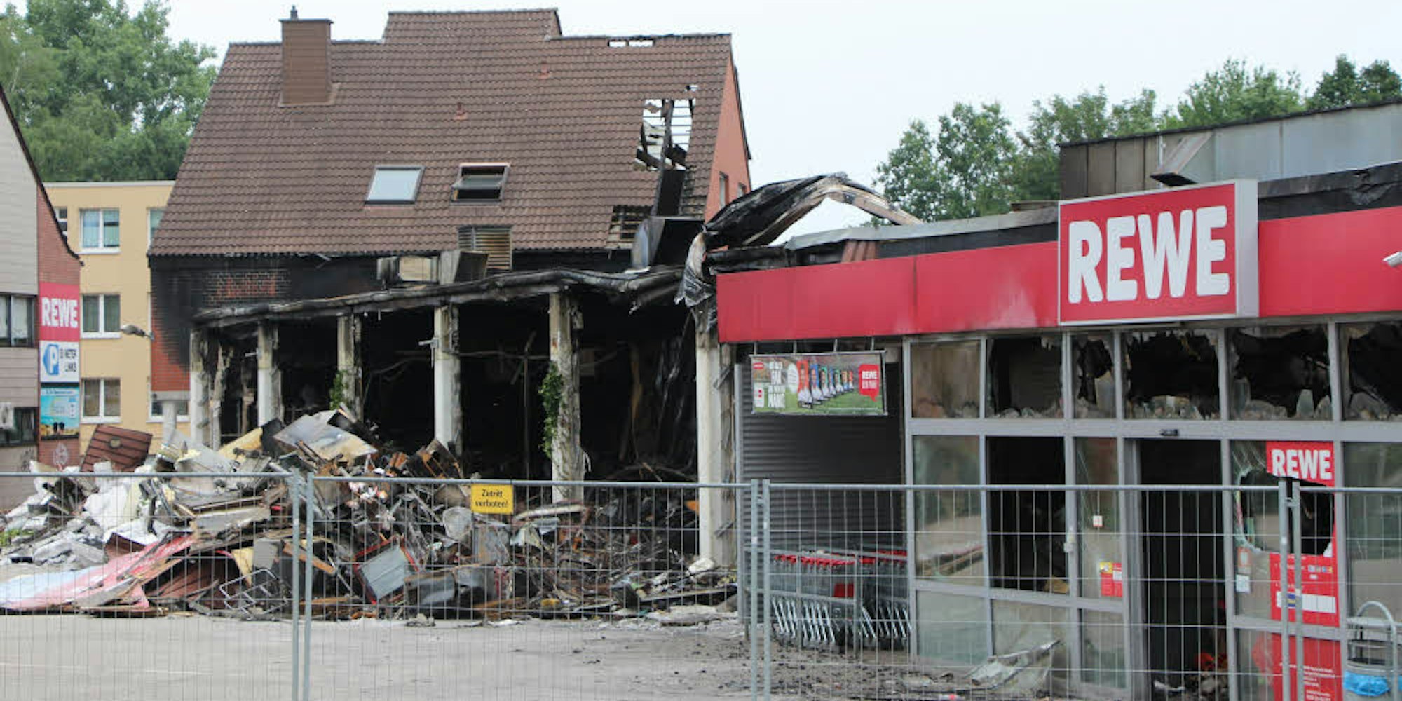 Rewe in FrechenKriminalpolizei erkundet Brandruine – Wachen gegen Schaulustige