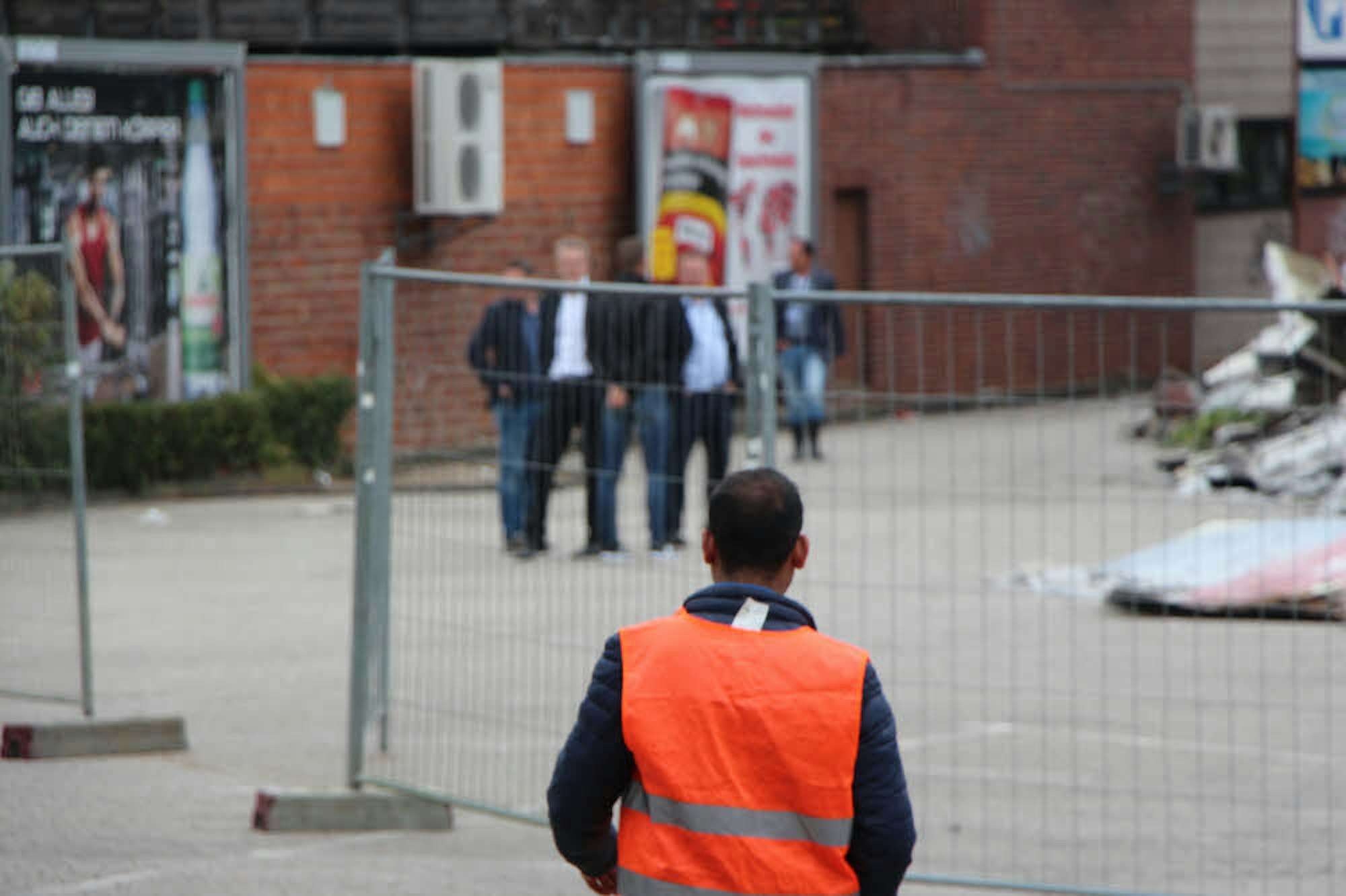 Frechen – Der Geruch von kaltem Rauch hängt noch immer über der Brandstätte des Rewe-Marktes in Frechen. Das gesamte Gelände ist mit einem Bauzaun weiträumig abgesperrt. Wachleute passen auf, dass keine Schaulustigen zu nah an das Gebäude gelangen. Immer wieder bleiben Passanten stehen, um sich die verkohlte Ruine anzusehen.