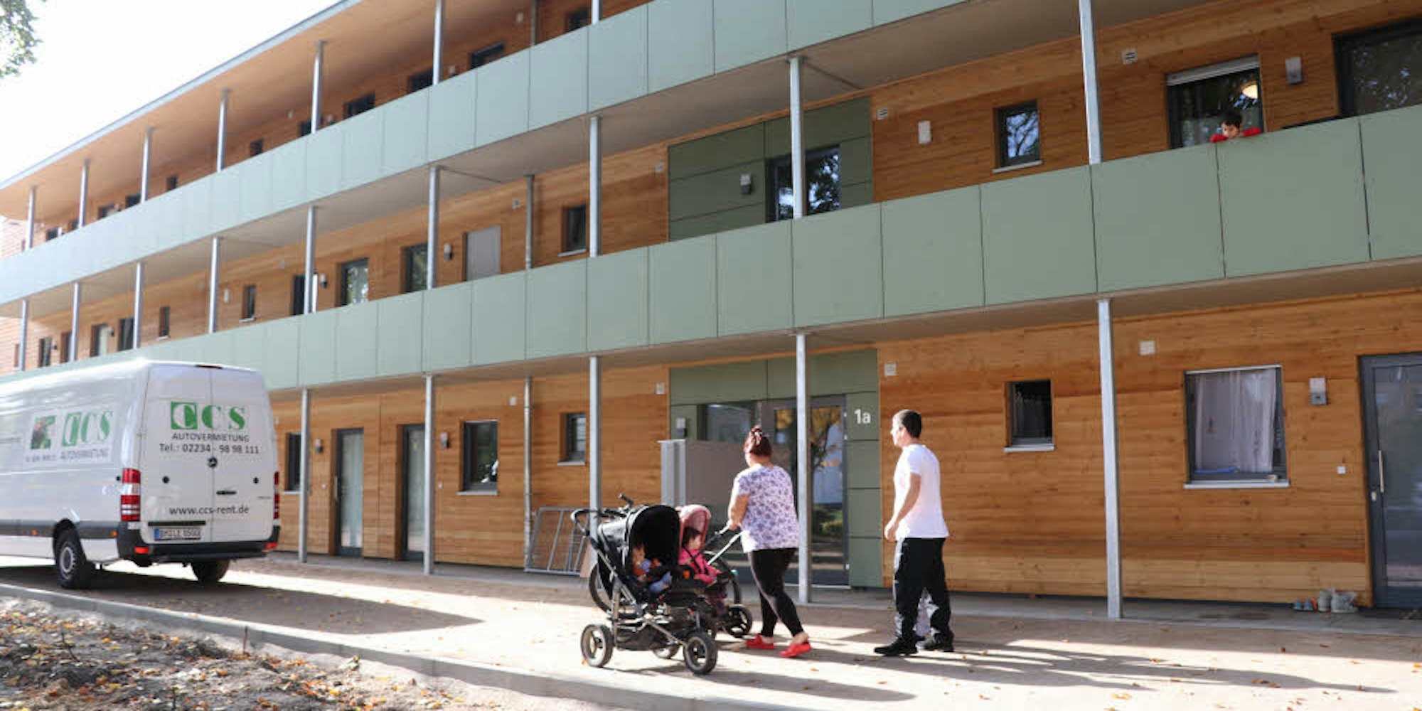 Frechen – Die meisten der Menschen sind glücklich, dass das „Containerleben“ ein Ende hat. So sieht es jedenfalls ein Bewohner, der mit seiner fünfköpfigen Familie von der Burgstraße in Frechen nach Habbelrath gezogen ist. Dort gehört er zu den ersten Bewohnern in dem Holzgebäude, das die Gemeinnützige Wohnungsbaugesellschaft an der Klosterstraße errichtet hat.