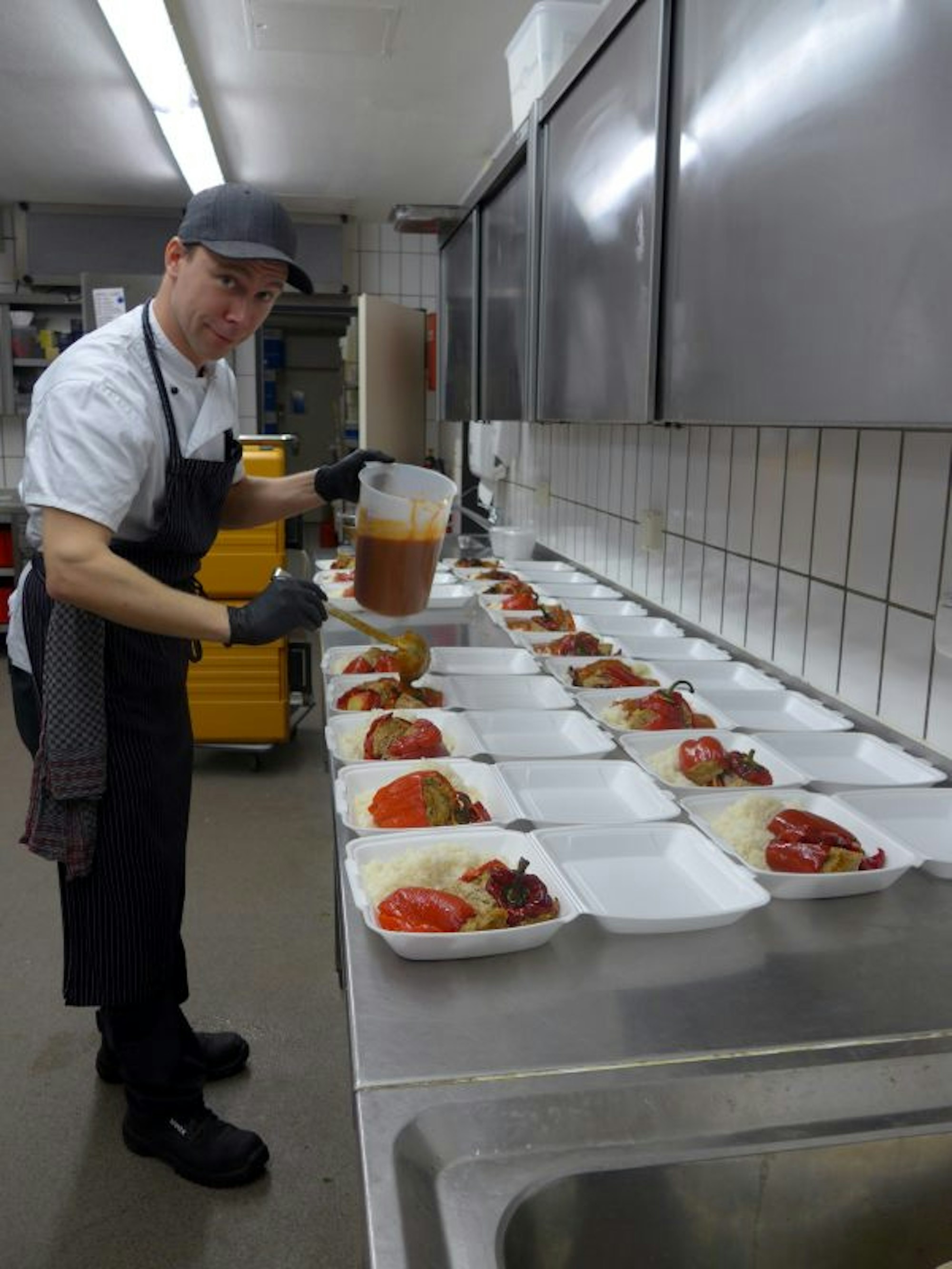 Benjamin Dröge kocht in der Kantine des Finanzamtes in Bergheim. Von hier werden die Speisen ausgeliefert.