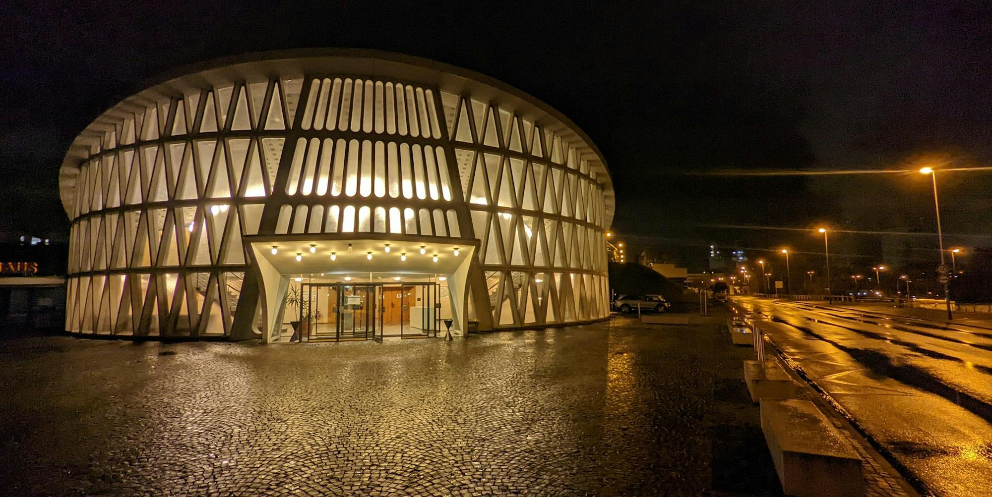 Das Schmuckkästchen mit seiner markanten geschwungene Dachkonstruktion stammt aus dem Jahr 1957. „Damals galten ganz andere Brandschutzbestimmungen“, berichtet Jakobs. So gab es im Saal, der bis zu 1200 Besucher fasst, bislang keine Brandmeldeanlage.